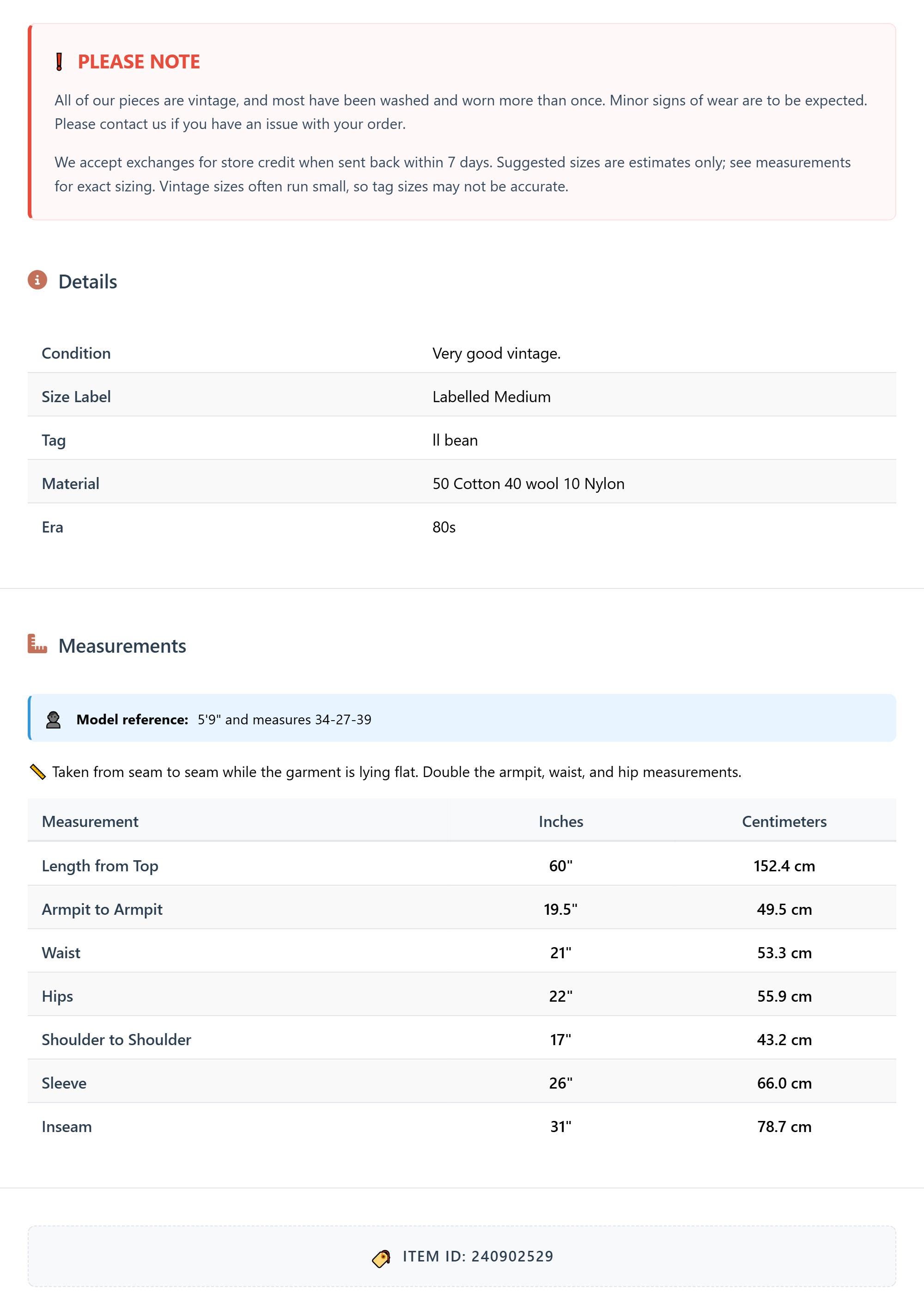 Suggested sizes are estimates only; see measurements for exact sizing. Vintage sizes often run small, so tag sizes may not be accurate.