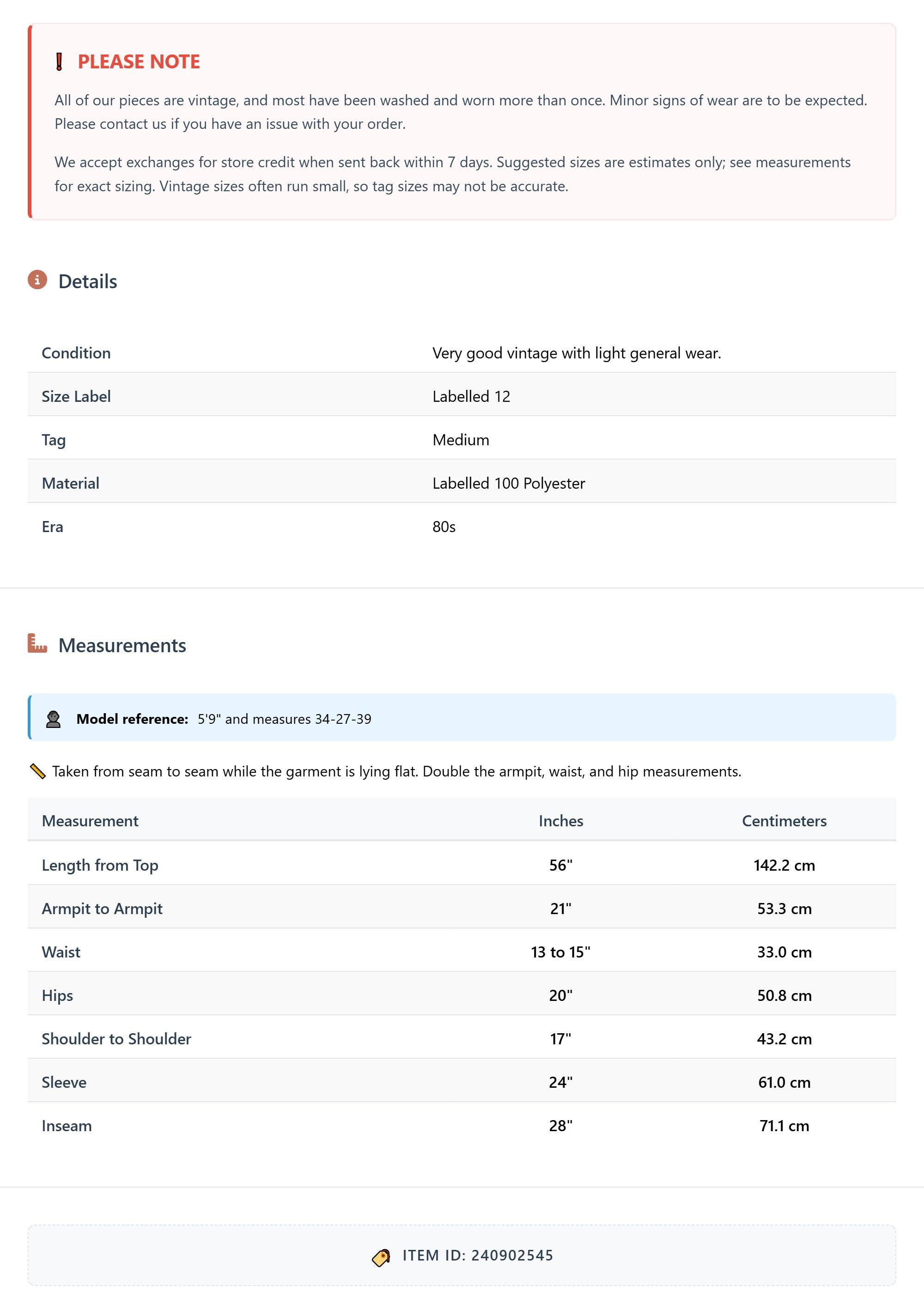 Suggested sizes are estimates only; see measurements for exact sizing. Vintage sizes often run small, so tag sizes may not be accurate.
