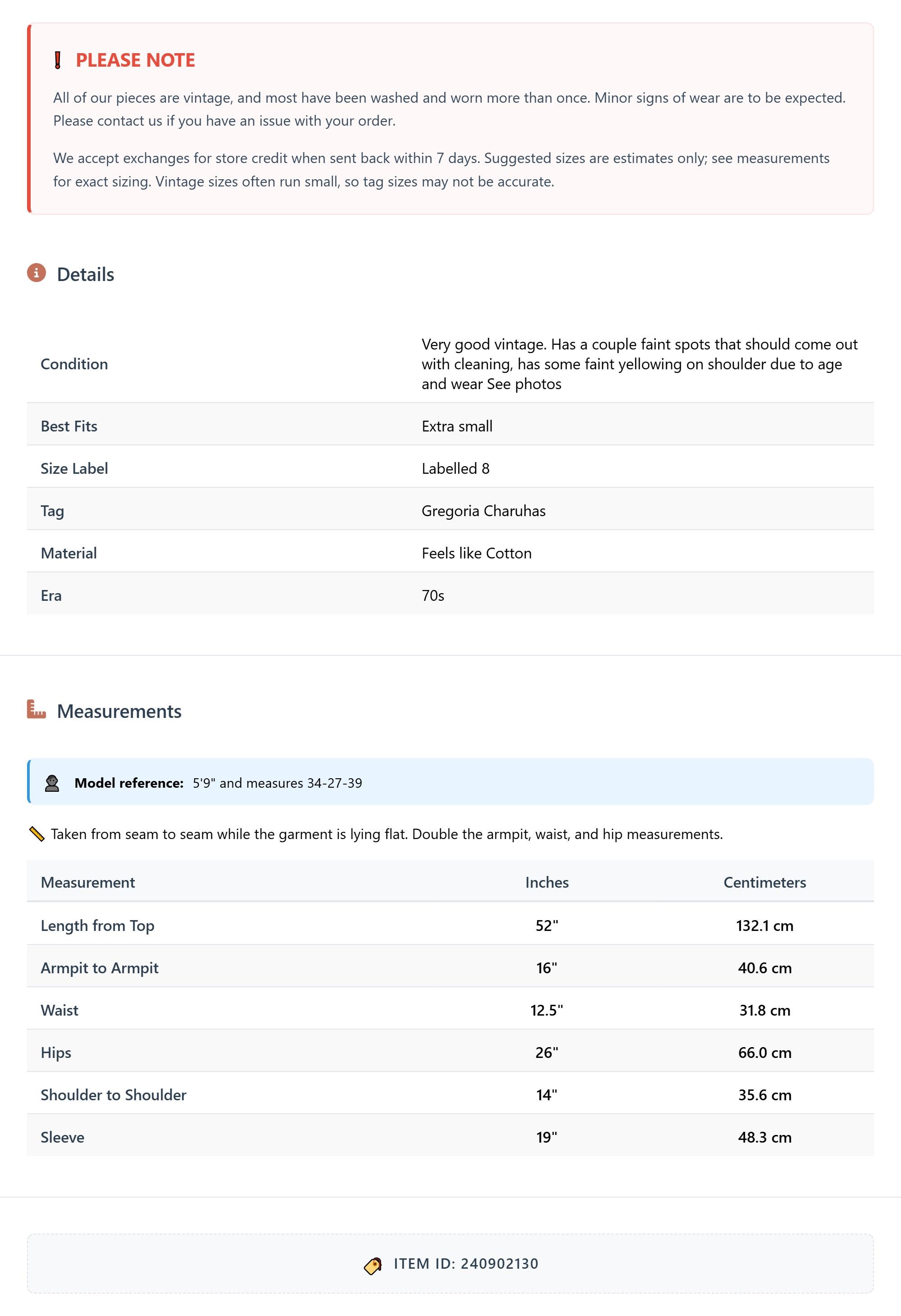 Suggested sizes are estimates only; see measurements for exact sizing. Vintage sizes often run small, so tag sizes may not be accurate.