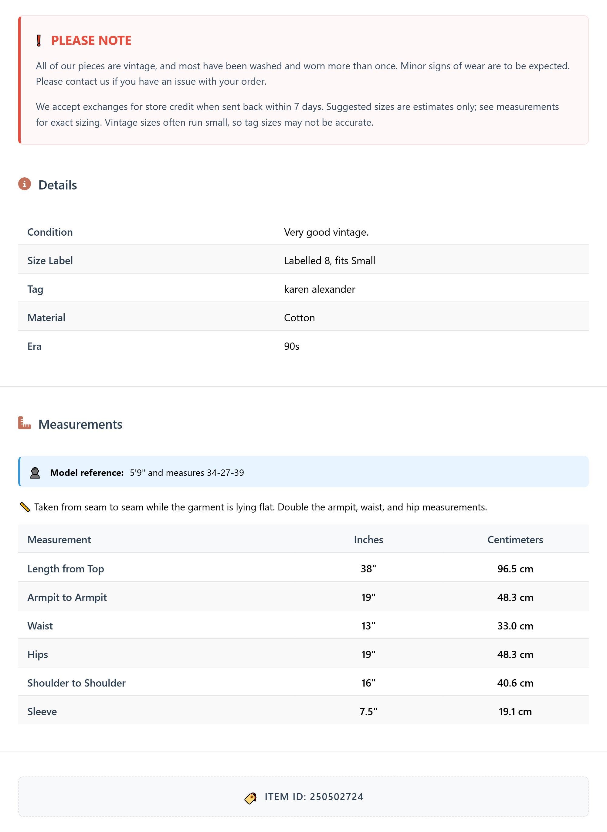 Suggested sizes are estimates only; see measurements for exact sizing. Vintage sizes often run small, so tag sizes may not be accurate.