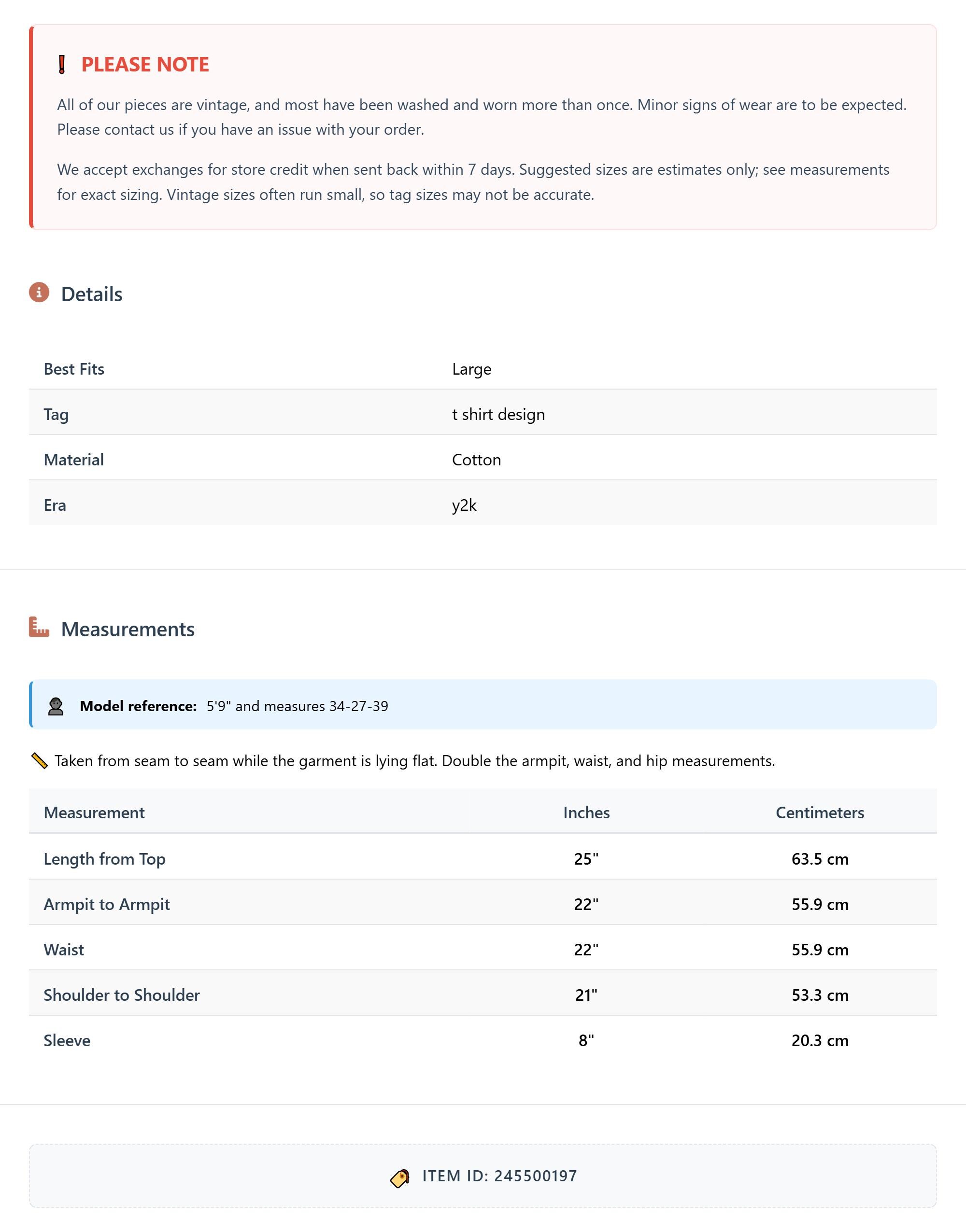 All of our pieces are vintage, and most have been washed and worn more than once. Minor signs of wear are to be expected. Please contact us if you have an issue with your order. We accept exchanges for store credit when sent back within 7 days.