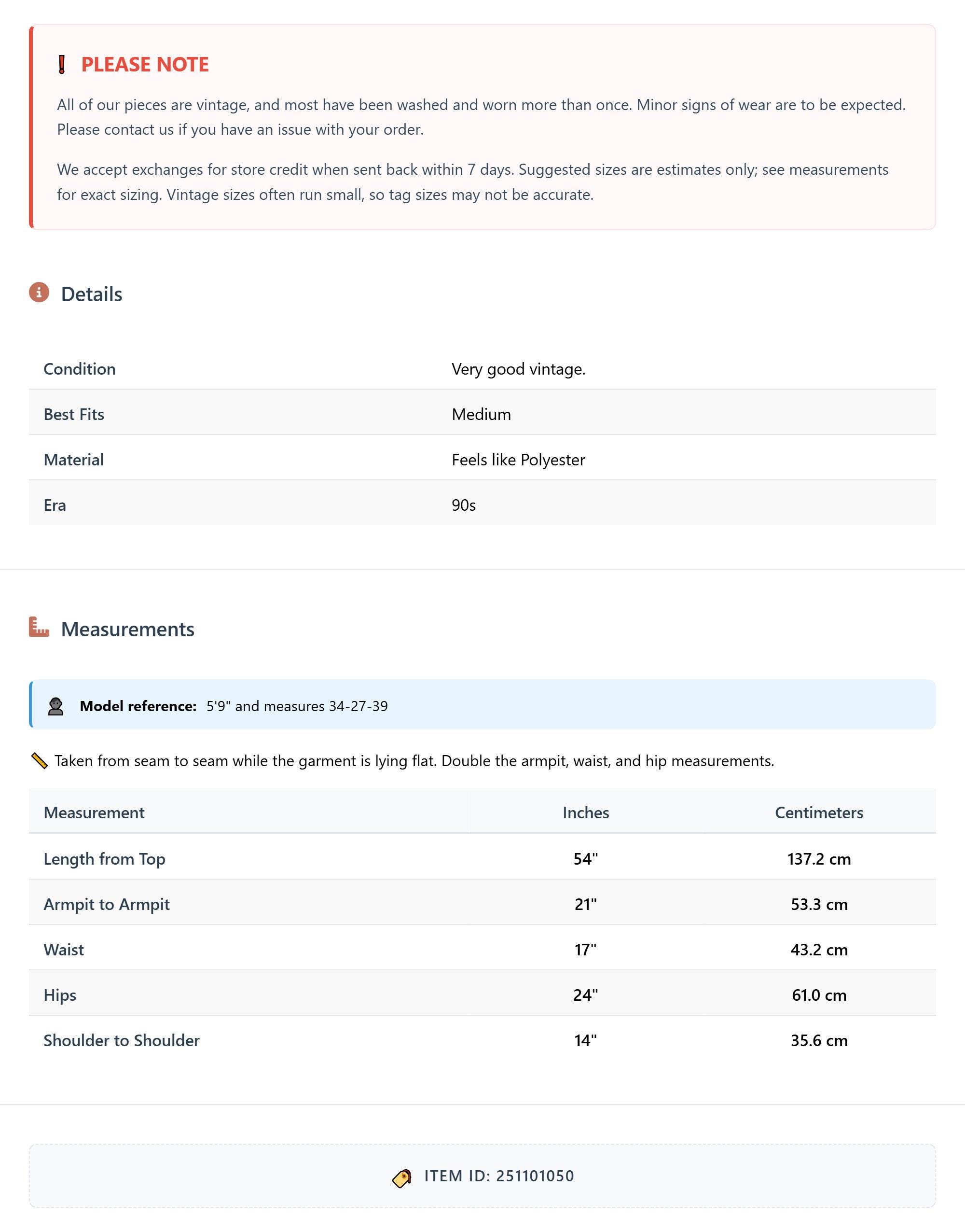 Suggested sizes are estimates only; see measurements for exact sizing. Vintage sizes often run small, so tag sizes may not be accurate.