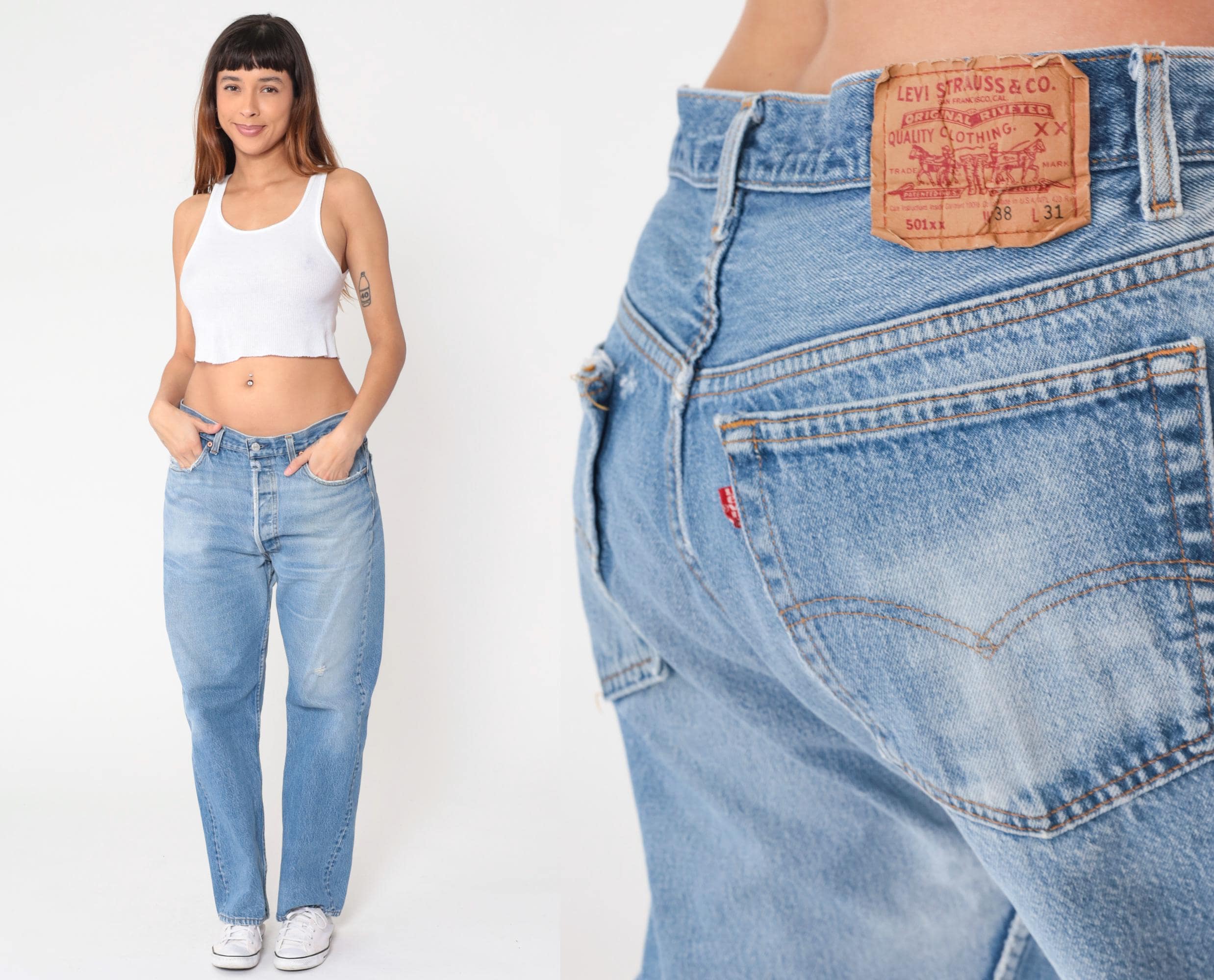 Vintage denim was usually made without any stretch, unlike modern jeans. Check the measurements to ensure proper fit, and remember to give yourself a little wiggle room in the waist and hips, depending on your preferred fit.