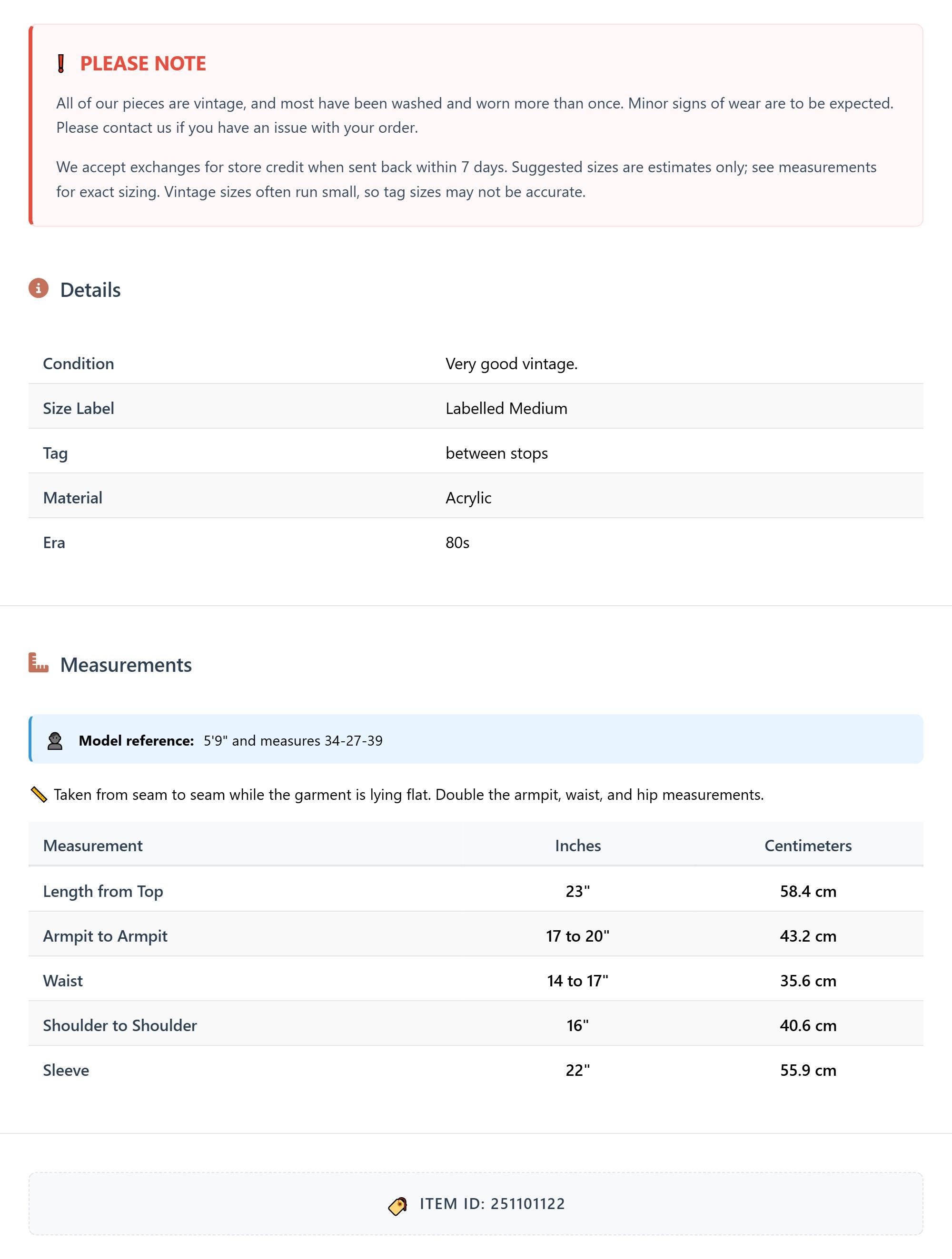 Suggested sizes are estimates only; see measurements for exact sizing. Vintage sizes often run small, so tag sizes may not be accurate.