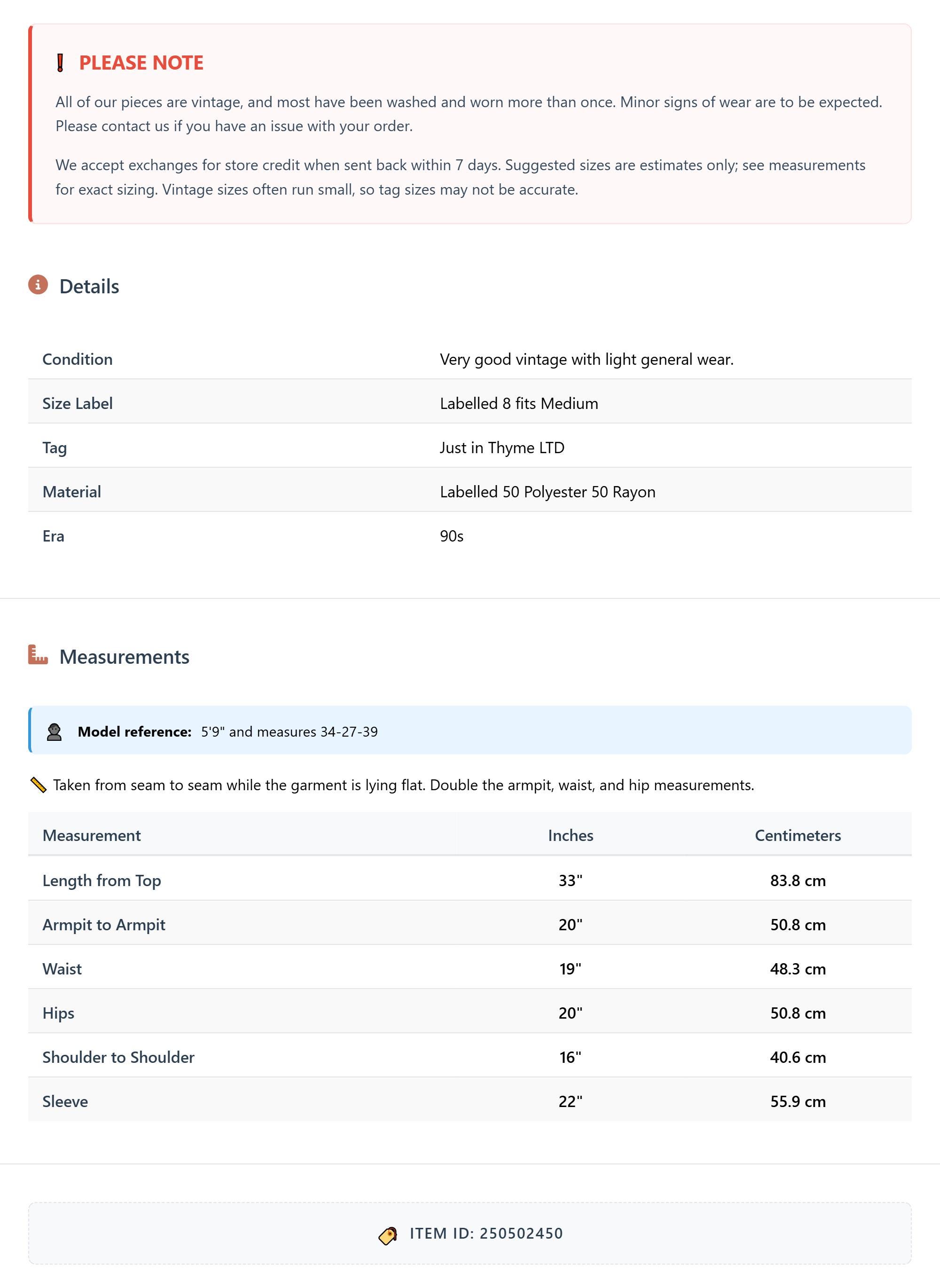 Suggested sizes are estimates only; see measurements for exact sizing. Vintage sizes often run small, so tag sizes may not be accurate.