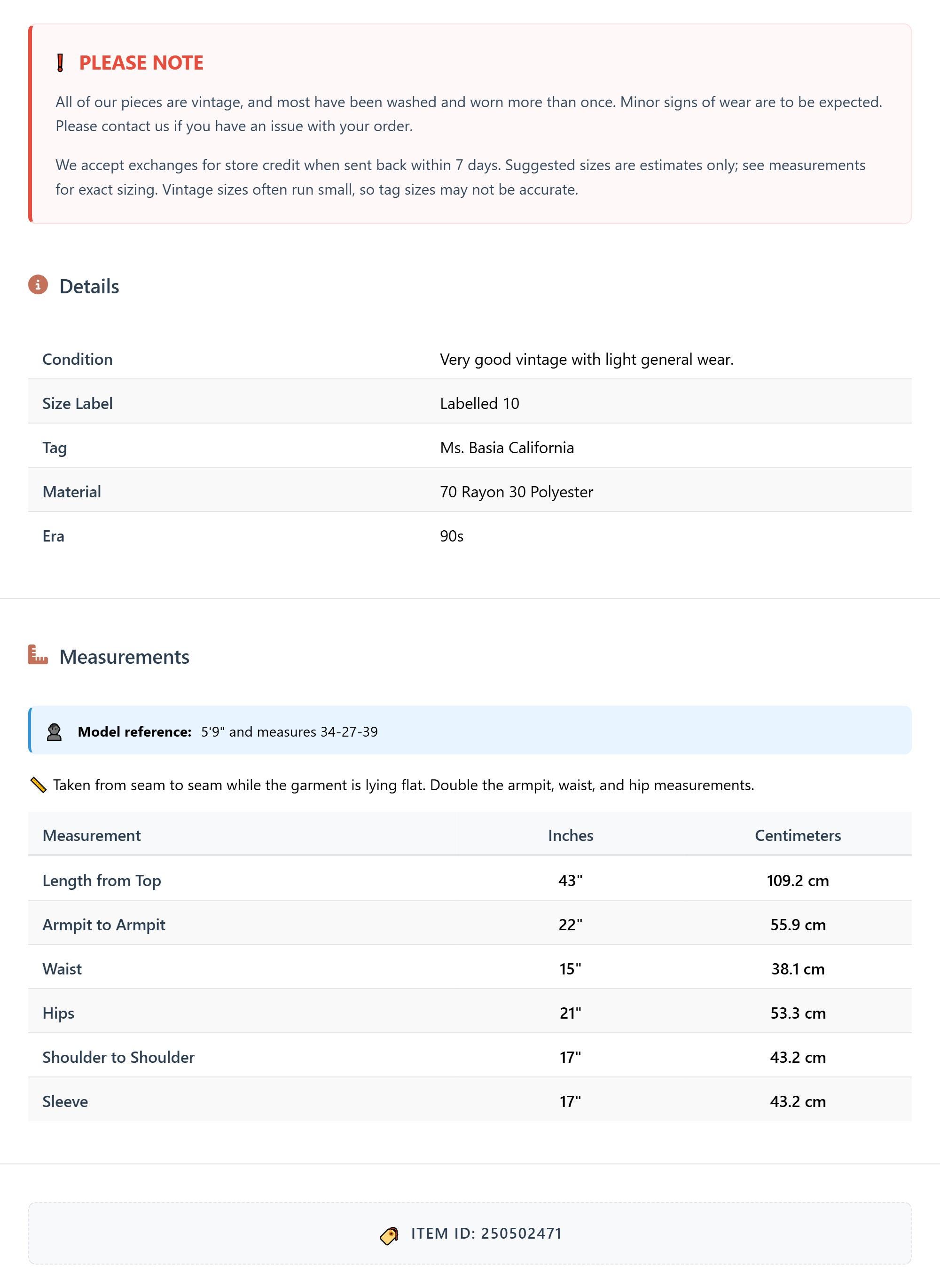 Suggested sizes are estimates only; see measurements for exact sizing. Vintage sizes often run small, so tag sizes may not be accurate.
