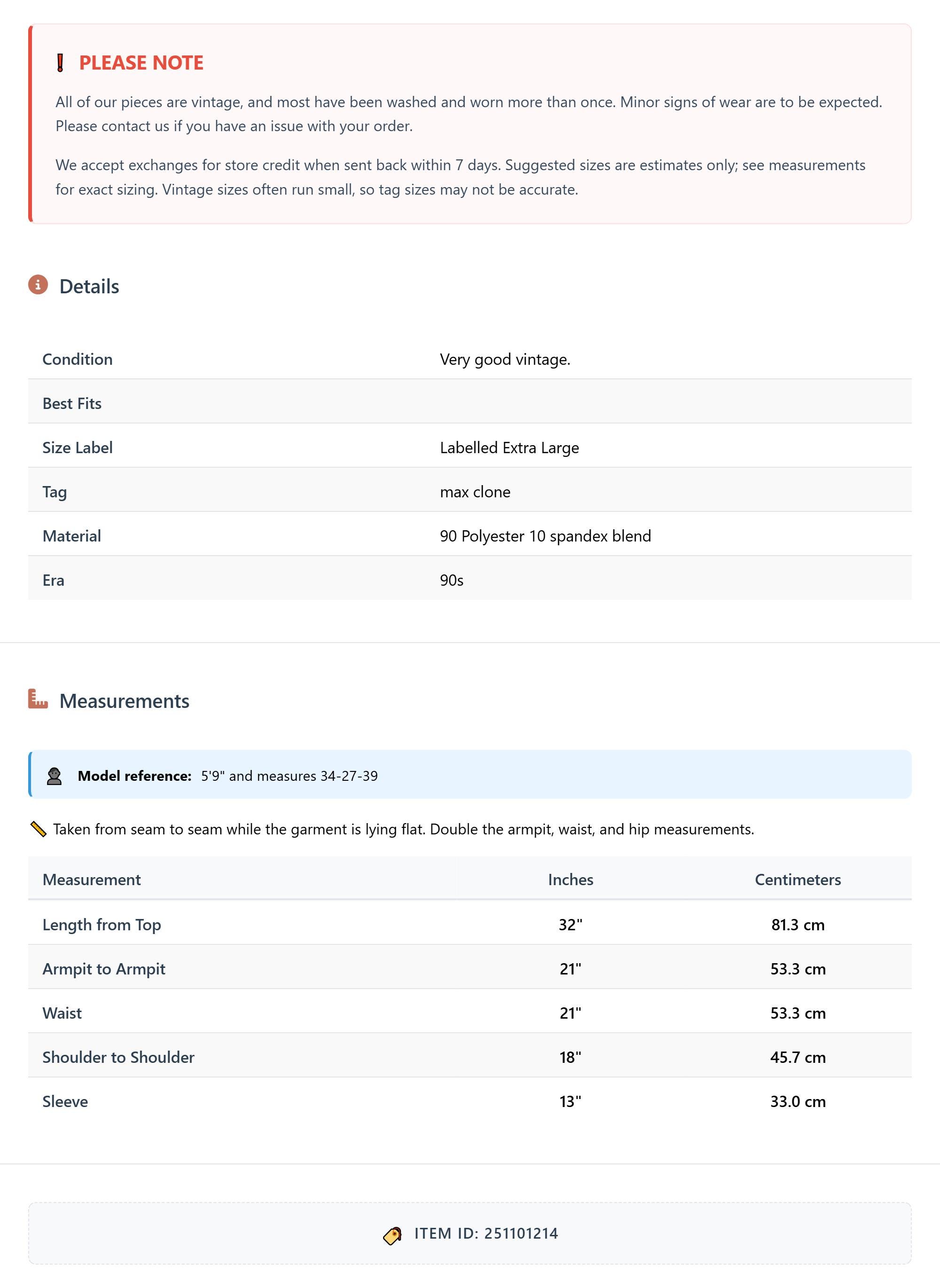 Suggested sizes are estimates only; see measurements for exact sizing. Vintage sizes often run small, so tag sizes may not be accurate.