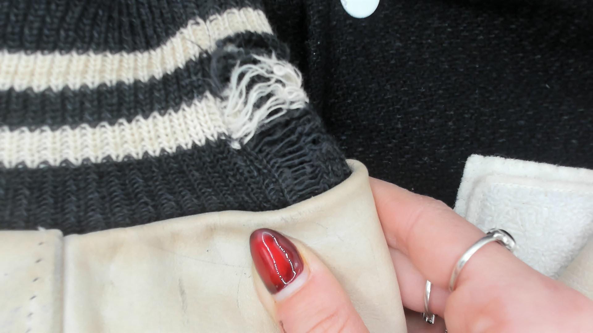 Material: Feels like wool with leather sleeves