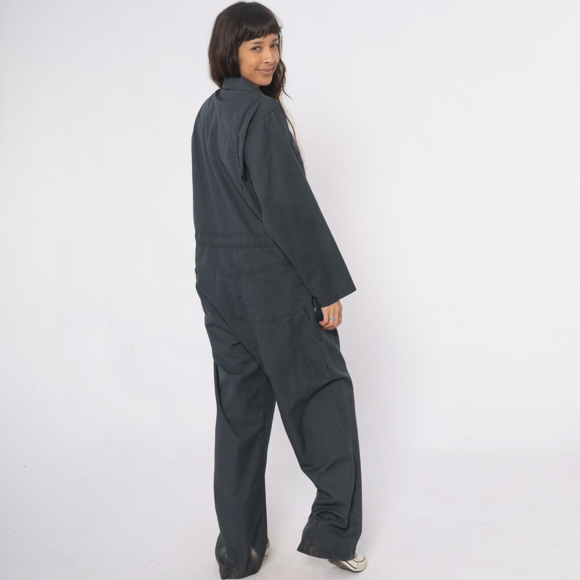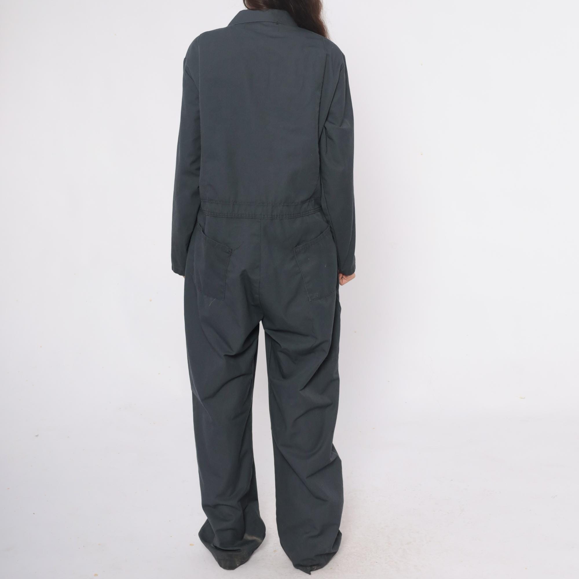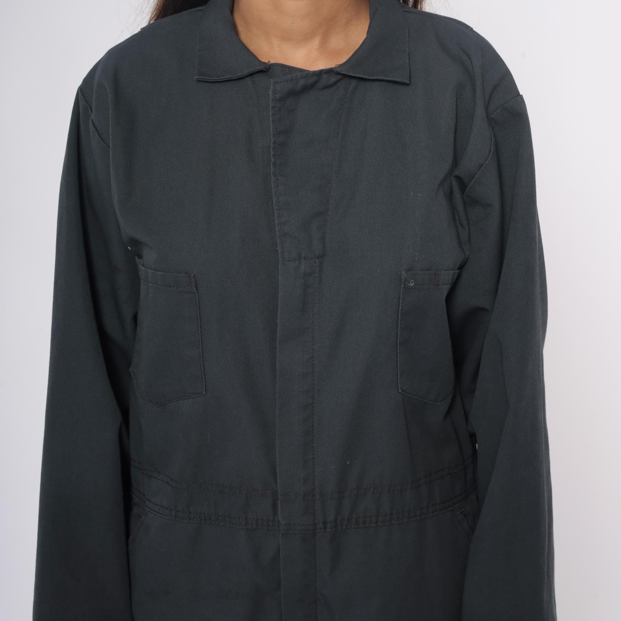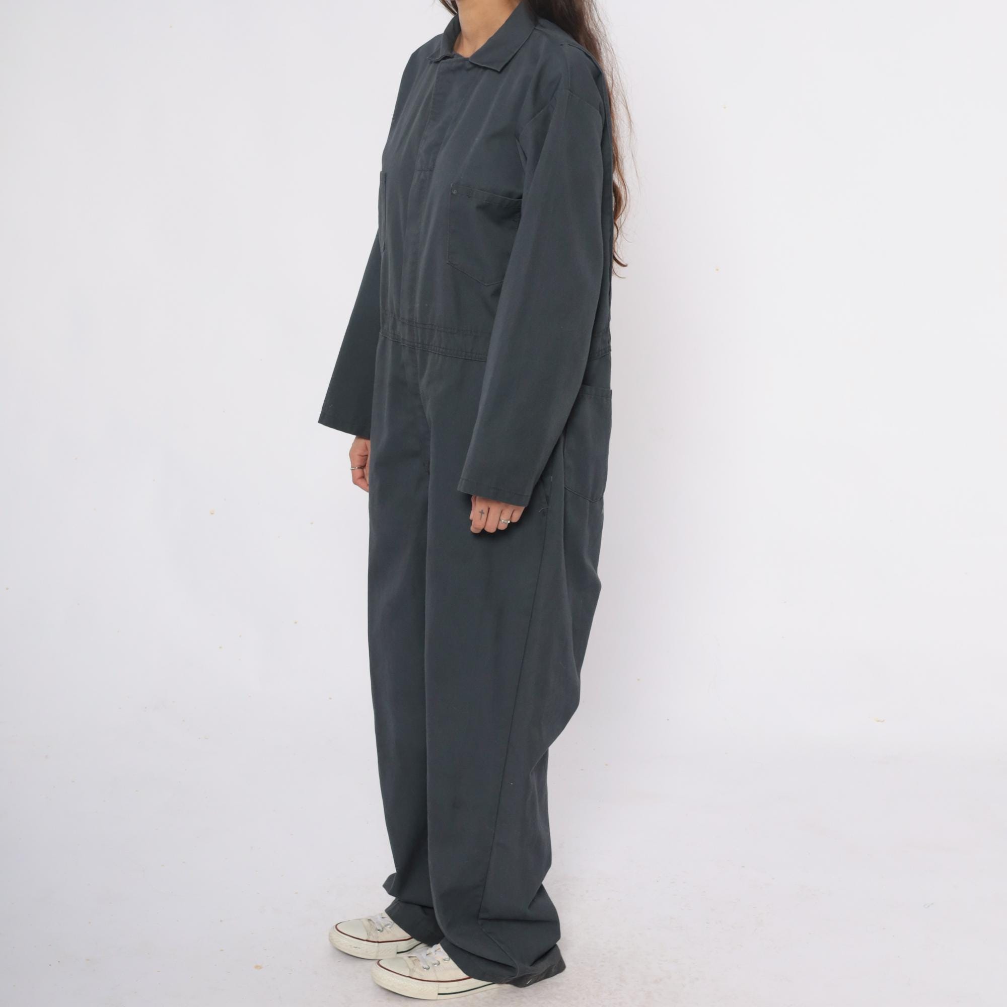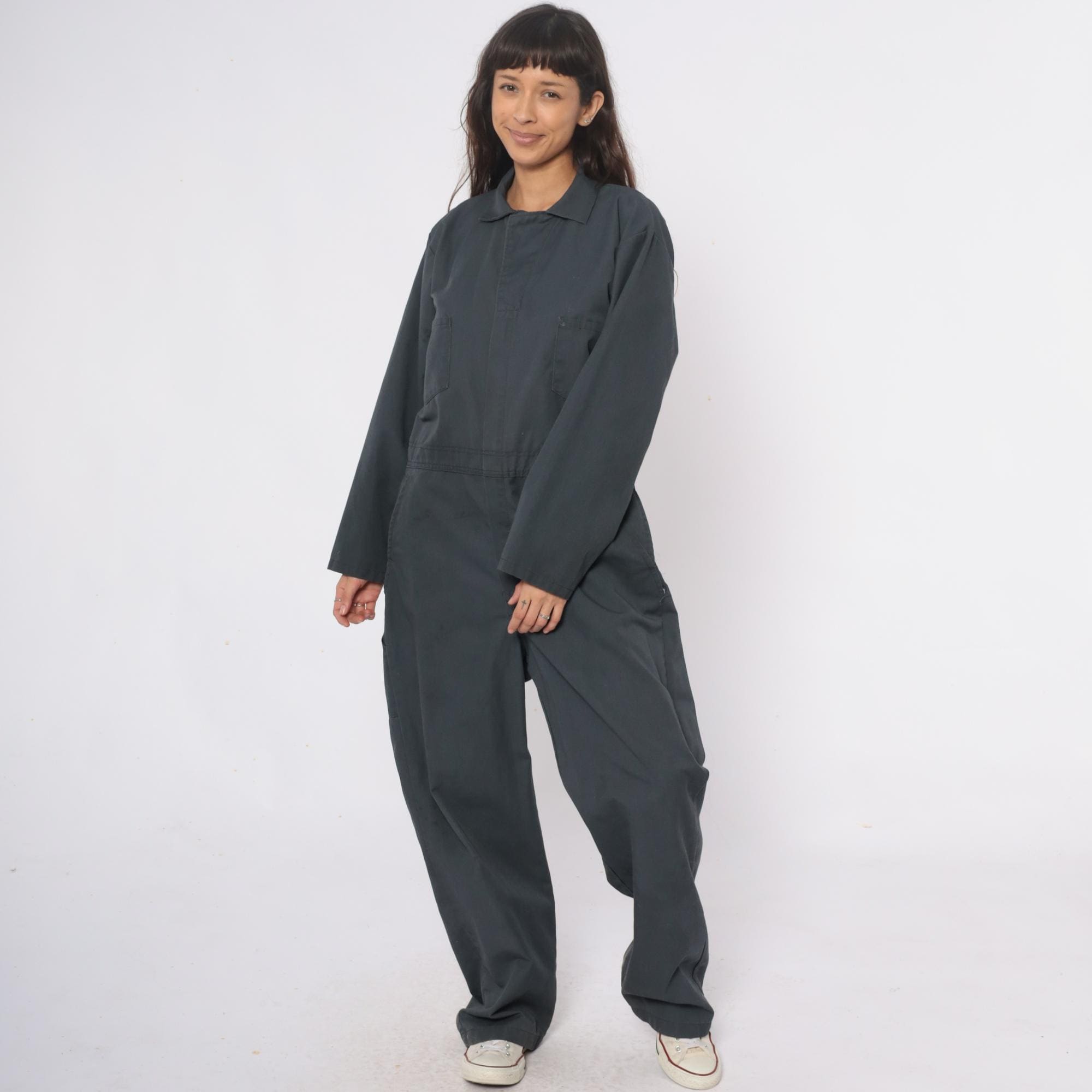 Y2K gray coveralls from Wearguard with collared neckline, zip up closure, and long sleeves. Two chest pockets, back pockets, and functional workwear styling.