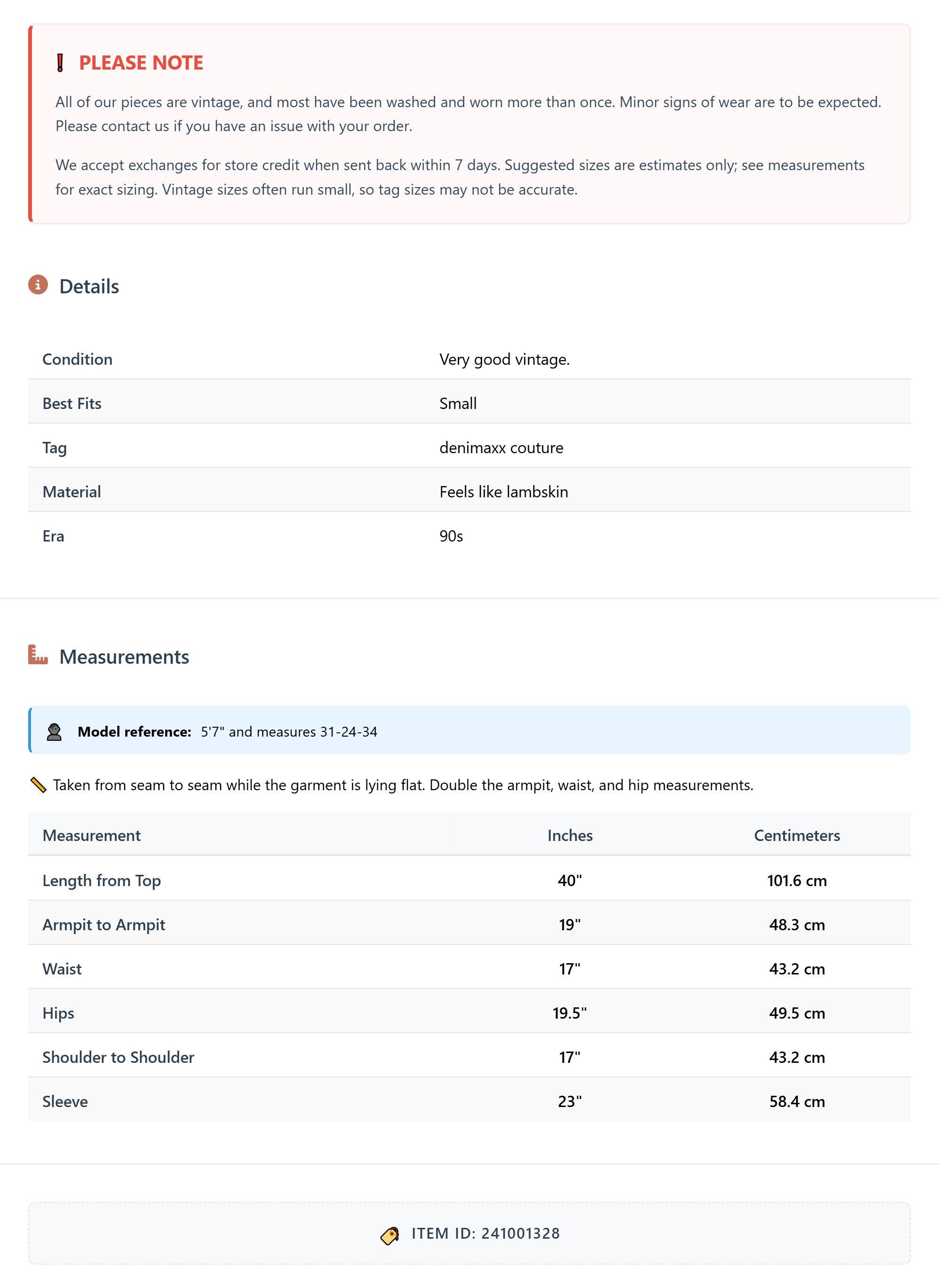 Suggested sizes are estimates only; see measurements for exact sizing. Vintage sizes often run small, so tag sizes may not be accurate.