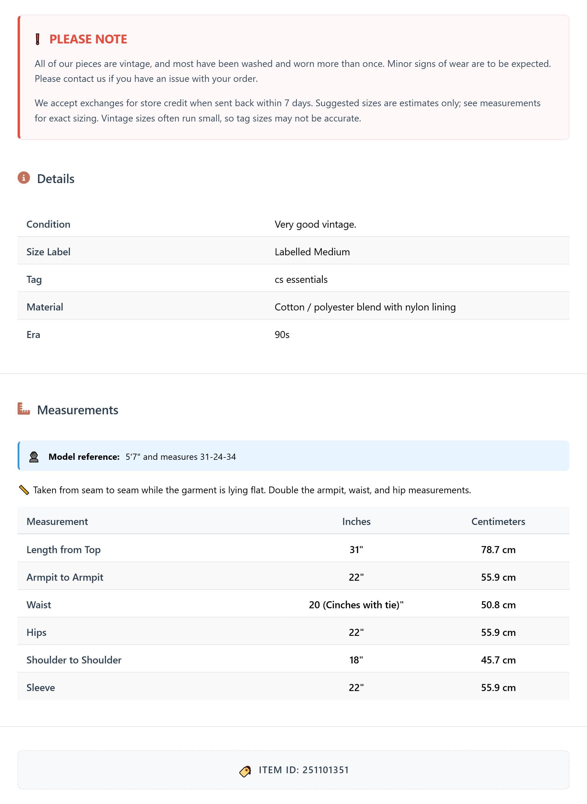 Suggested sizes are estimates only; see measurements for exact sizing. Vintage sizes often run small, so tag sizes may not be accurate.