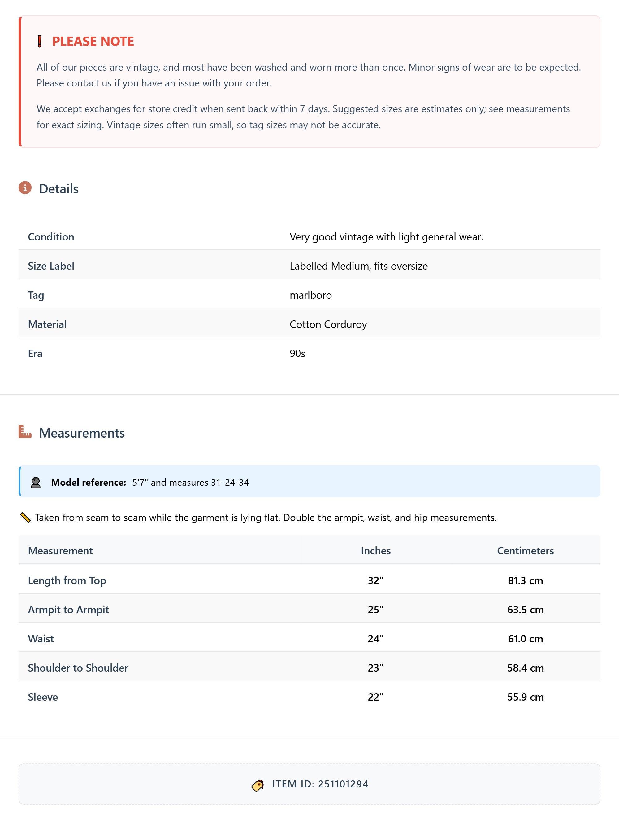 Suggested sizes are estimates only; see measurements for exact sizing. Vintage sizes often run small, so tag sizes may not be accurate.
