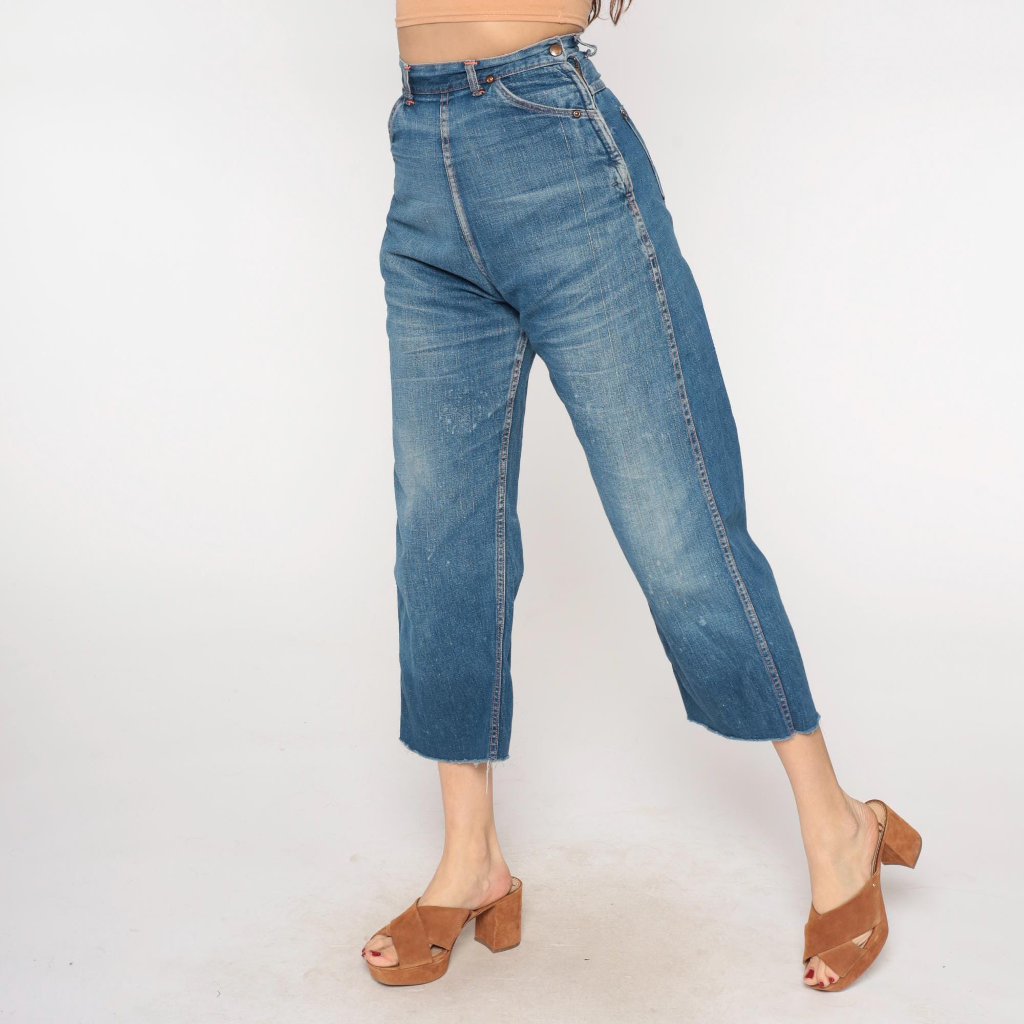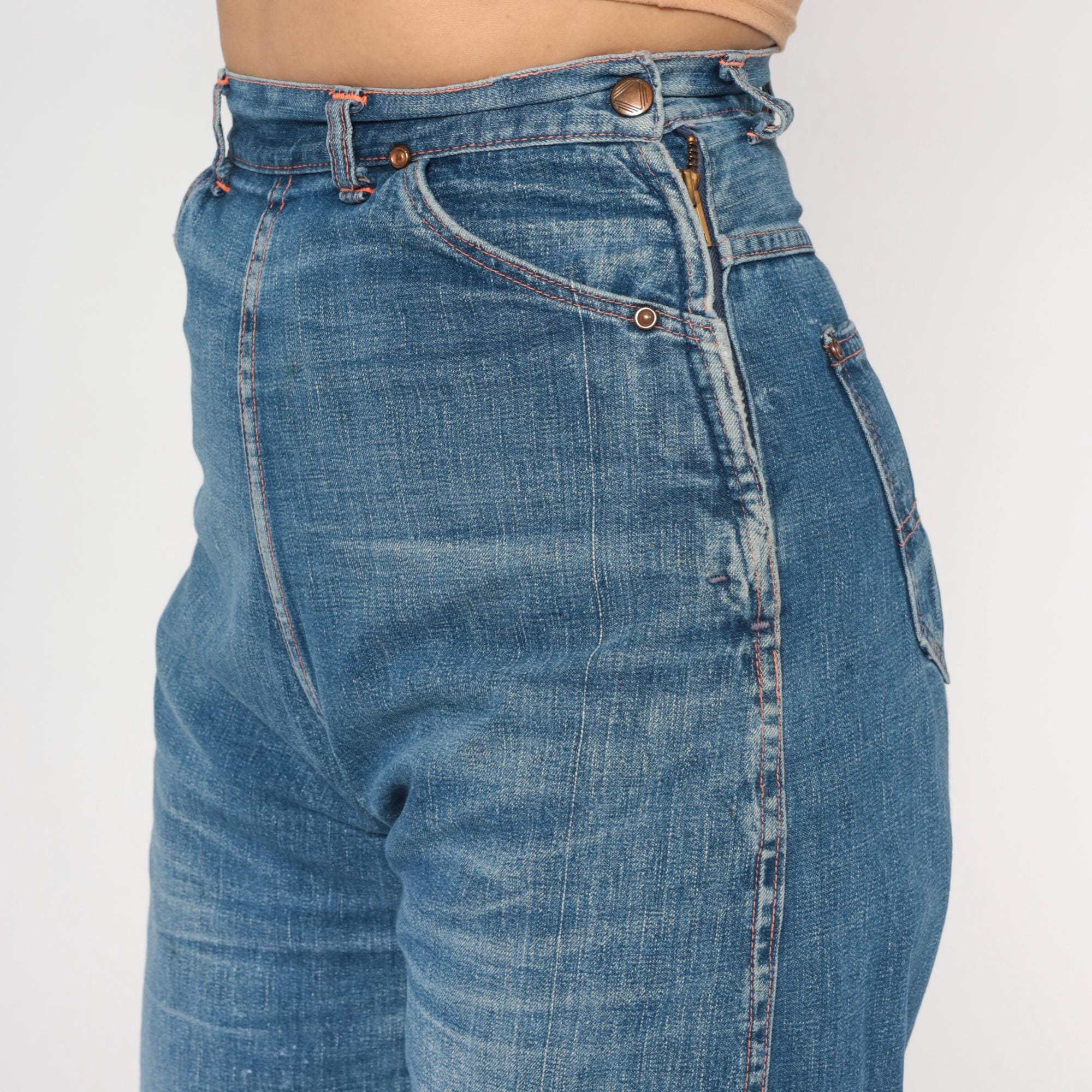 Vintage denim was usually made without any stretch, unlike modern jeans. Check the measurements to ensure proper fit, and remember to give yourself a little wiggle room in the waist and hips, depending on your preferred fit.