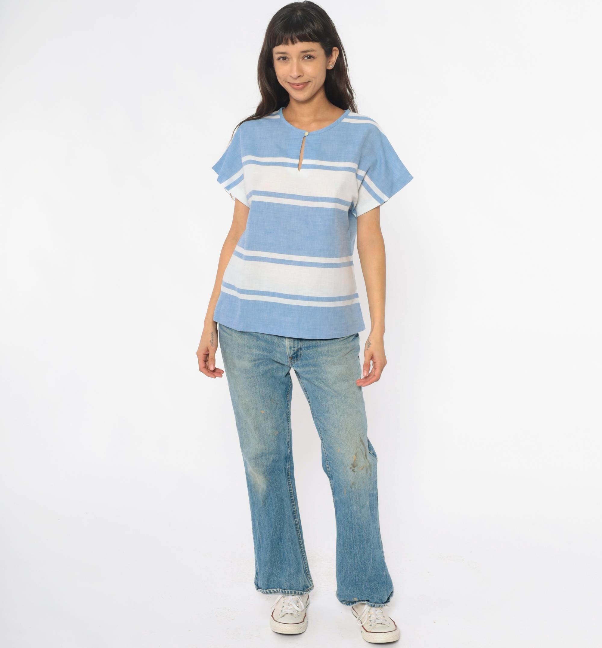 Vintage denim was usually made without any stretch, unlike modern jeans. Check the measurements to ensure proper fit, and remember to give yourself a little wiggle room in the waist and hips, depending on your preferred fit.