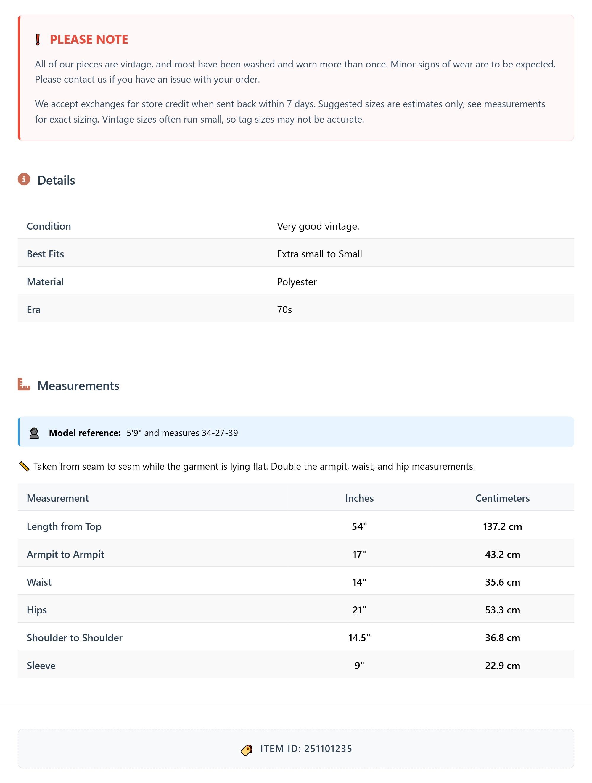 Suggested sizes are estimates only; see measurements for exact sizing. Vintage sizes often run small, so tag sizes may not be accurate.