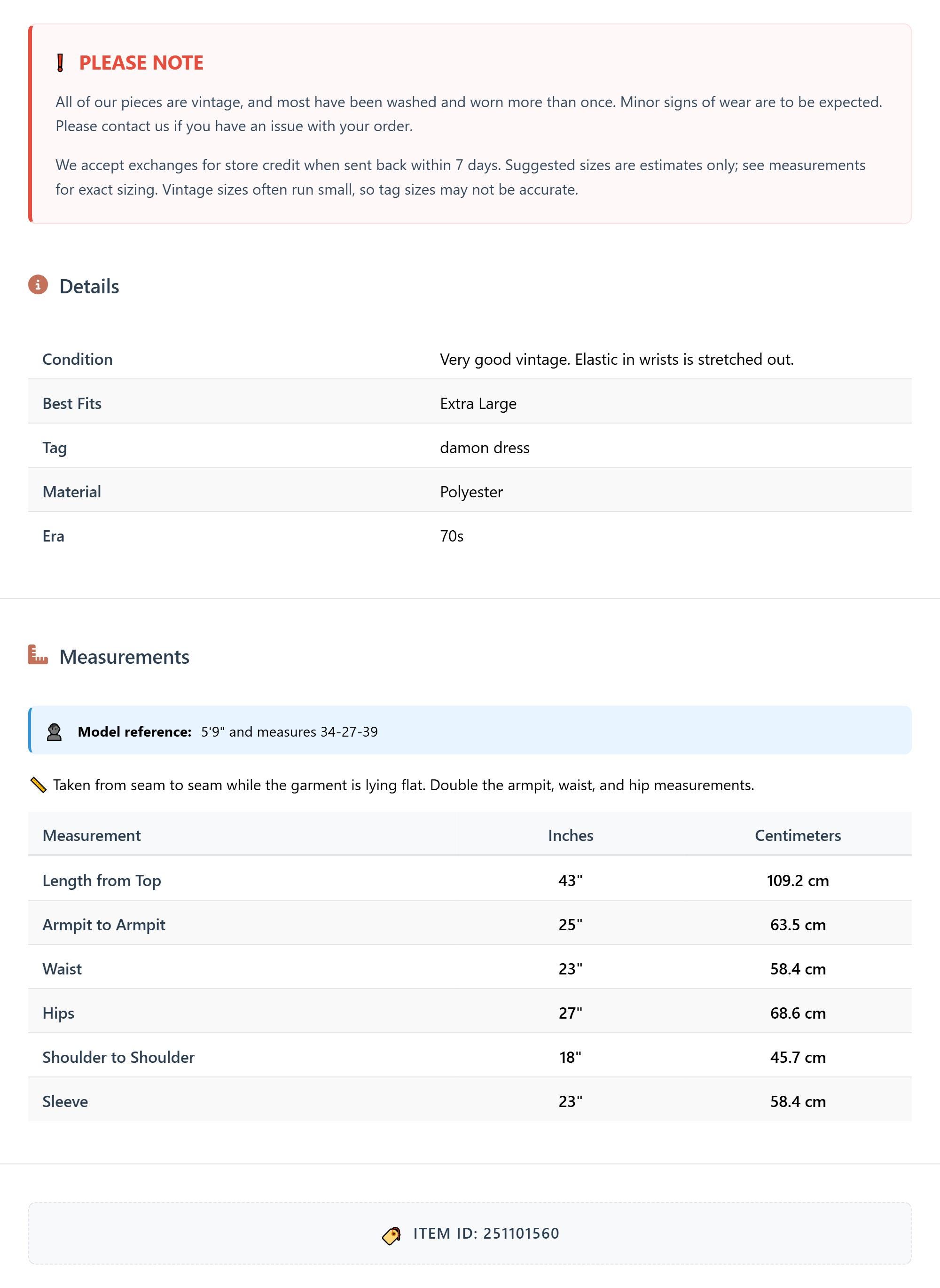 Suggested sizes are estimates only; see measurements for exact sizing. Vintage sizes often run small, so tag sizes may not be accurate.