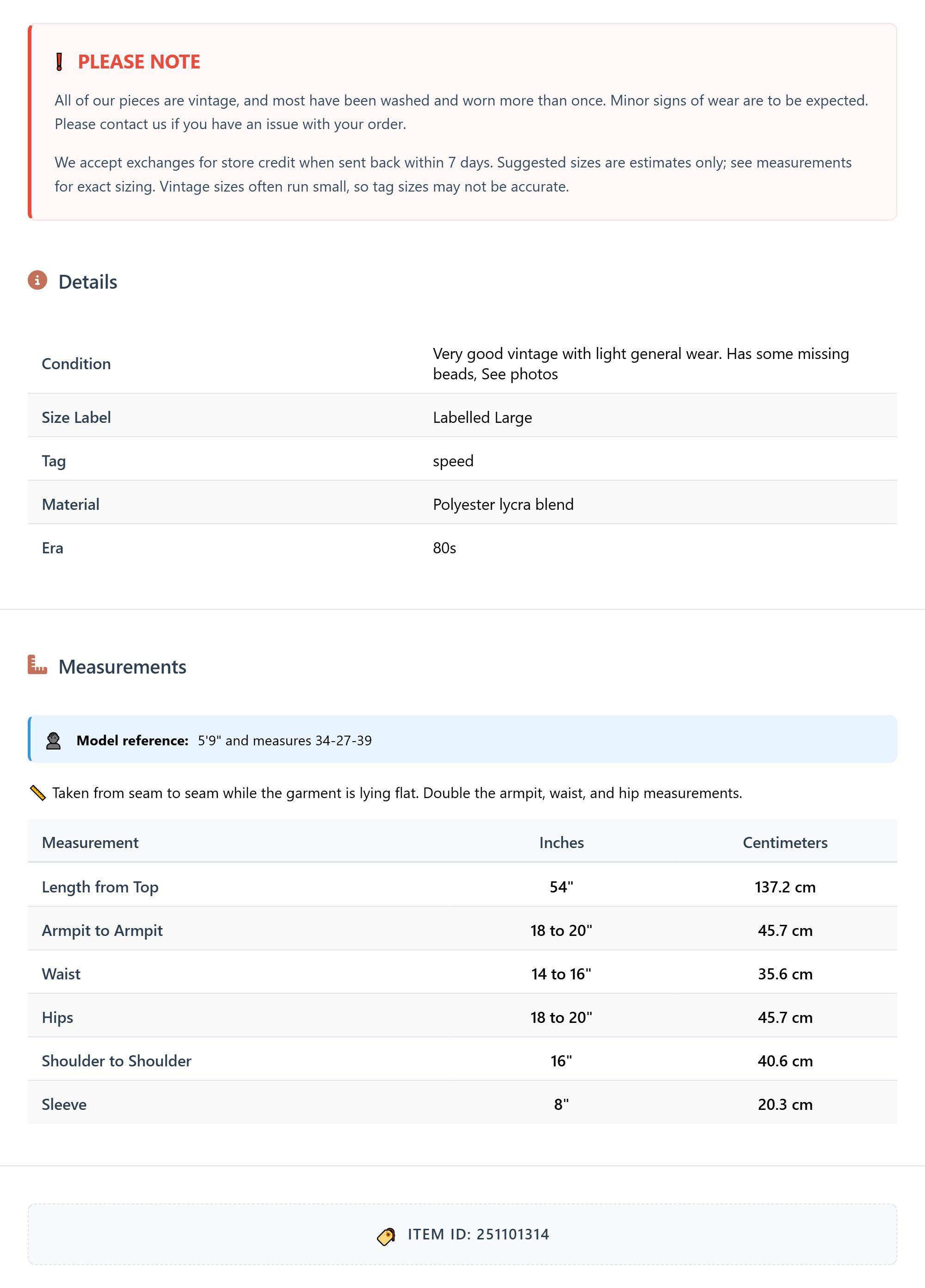 Suggested sizes are estimates only; see measurements for exact sizing. Vintage sizes often run small, so tag sizes may not be accurate.