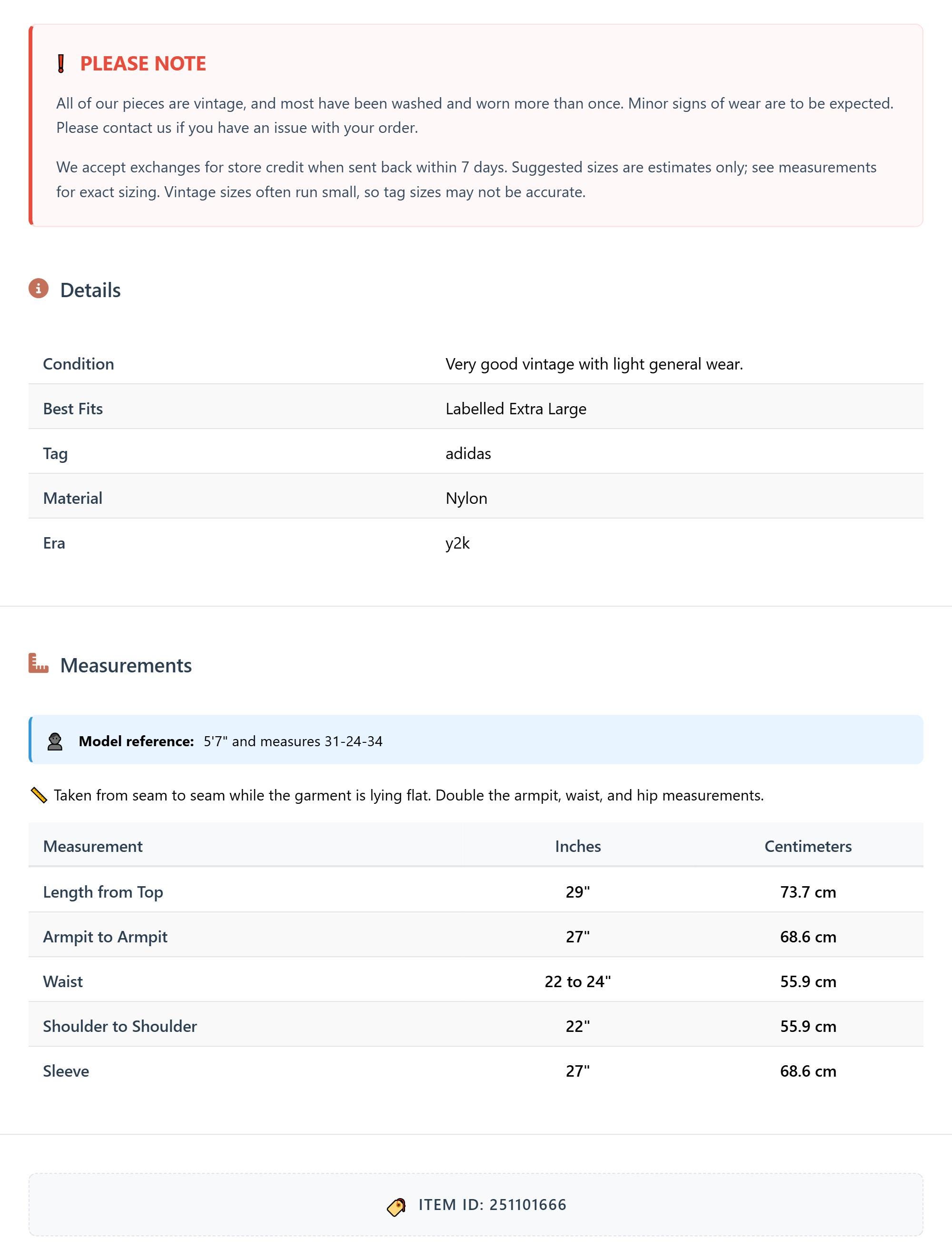 All of our pieces are vintage, and most have been washed and worn more than once. Minor signs of wear are to be expected. Please contact us if you have an issue with your order. We accept exchanges for store credit when sent back within 7 days.