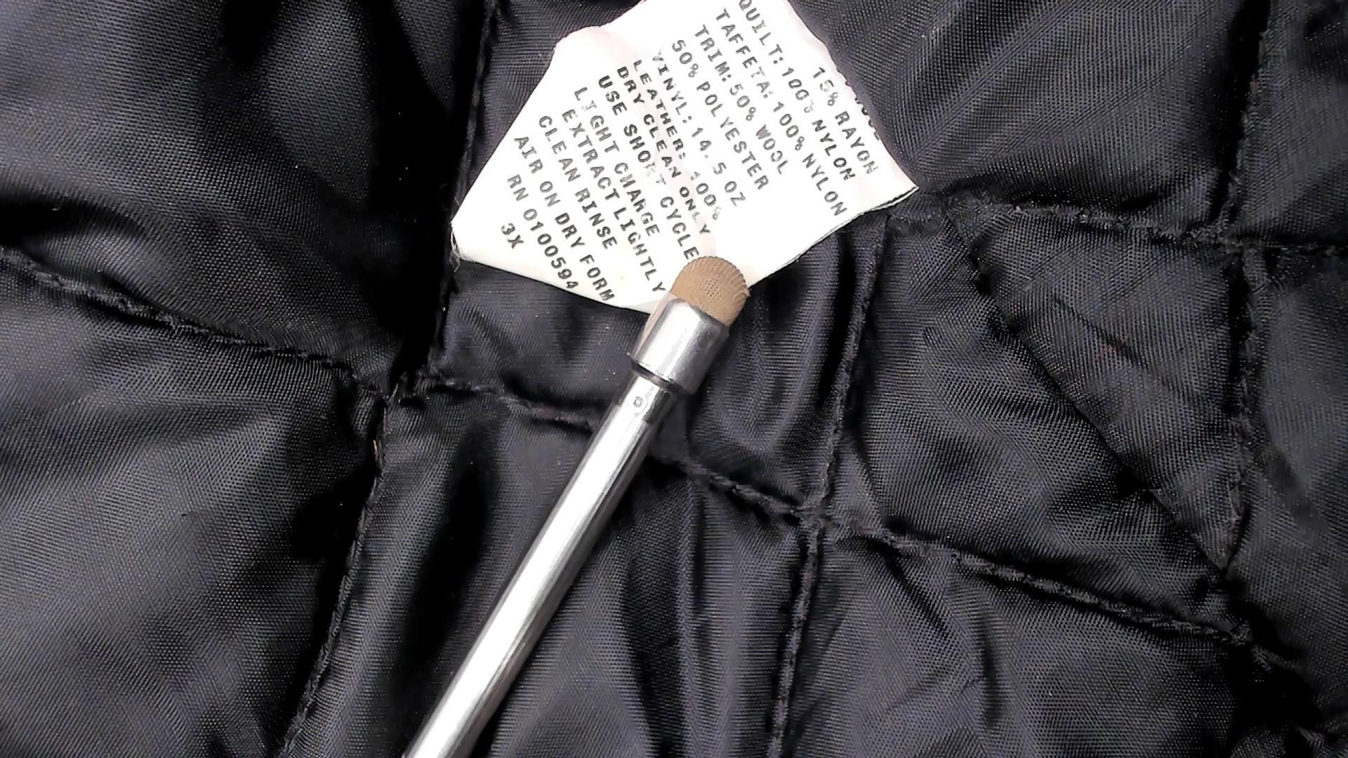 Material: wool blend with leather sleeves