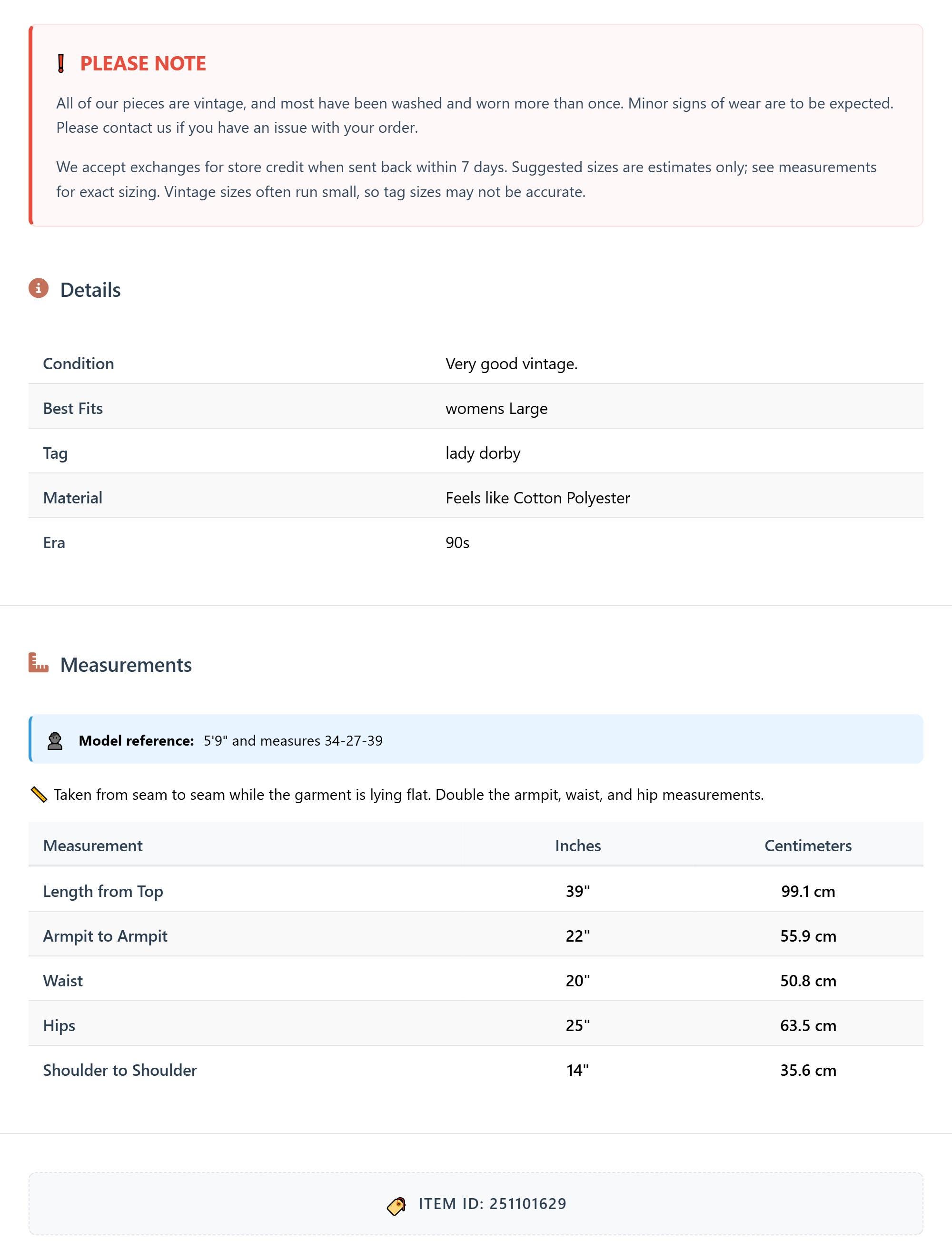 Suggested sizes are estimates only; see measurements for exact sizing. Vintage sizes often run small, so tag sizes may not be accurate.