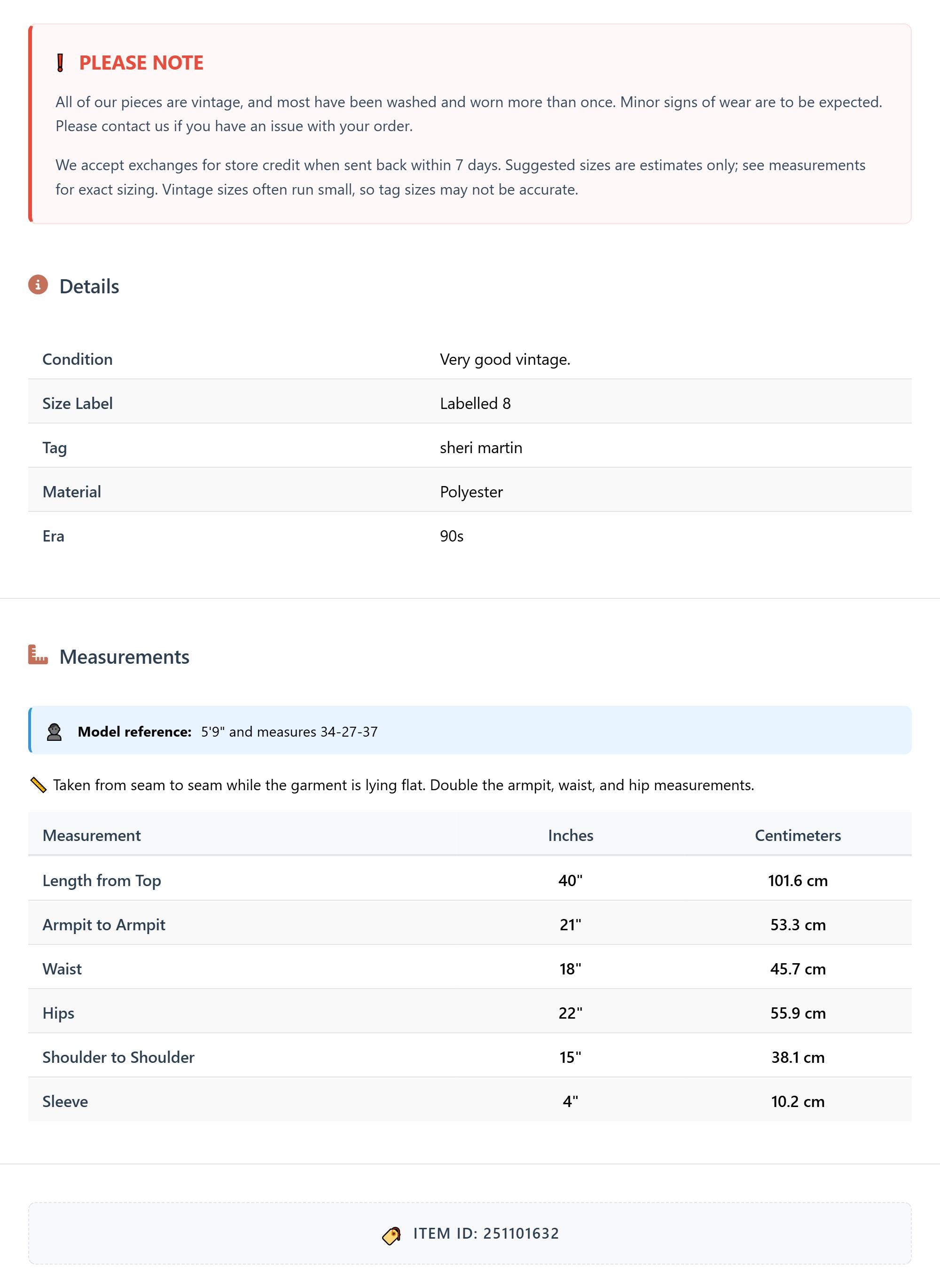 Suggested sizes are estimates only; see measurements for exact sizing. Vintage sizes often run small, so tag sizes may not be accurate.