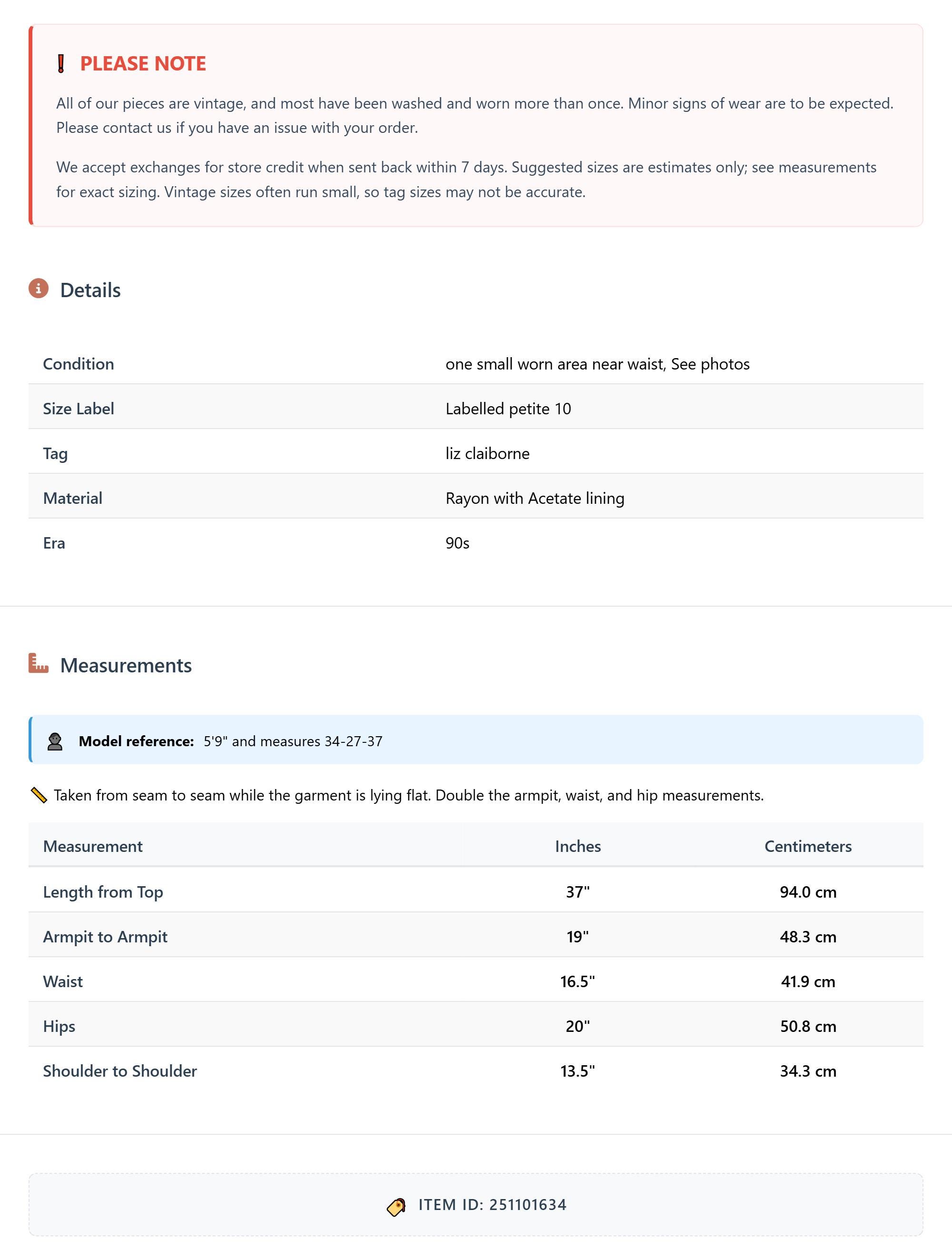Suggested sizes are estimates only; see measurements for exact sizing. Vintage sizes often run small, so tag sizes may not be accurate.