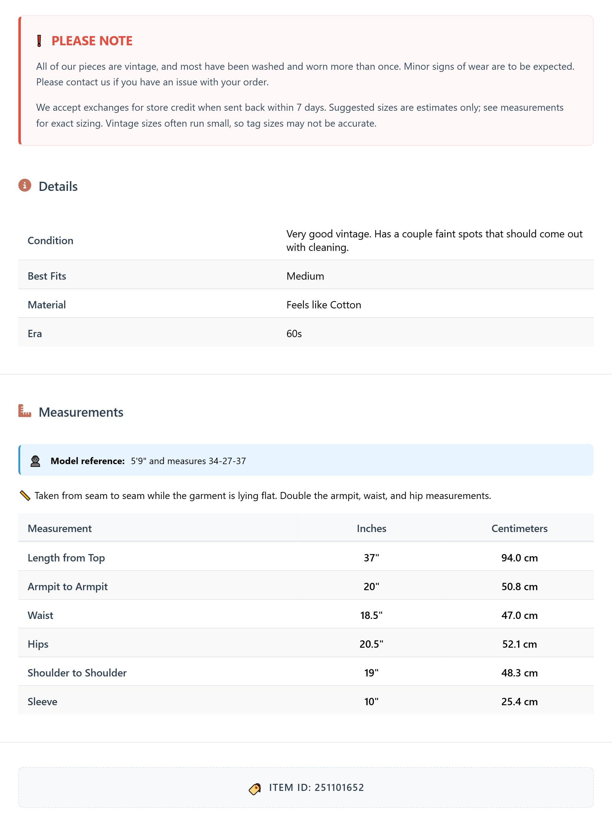 Suggested sizes are estimates only; see measurements for exact sizing. Vintage sizes often run small, so tag sizes may not be accurate.