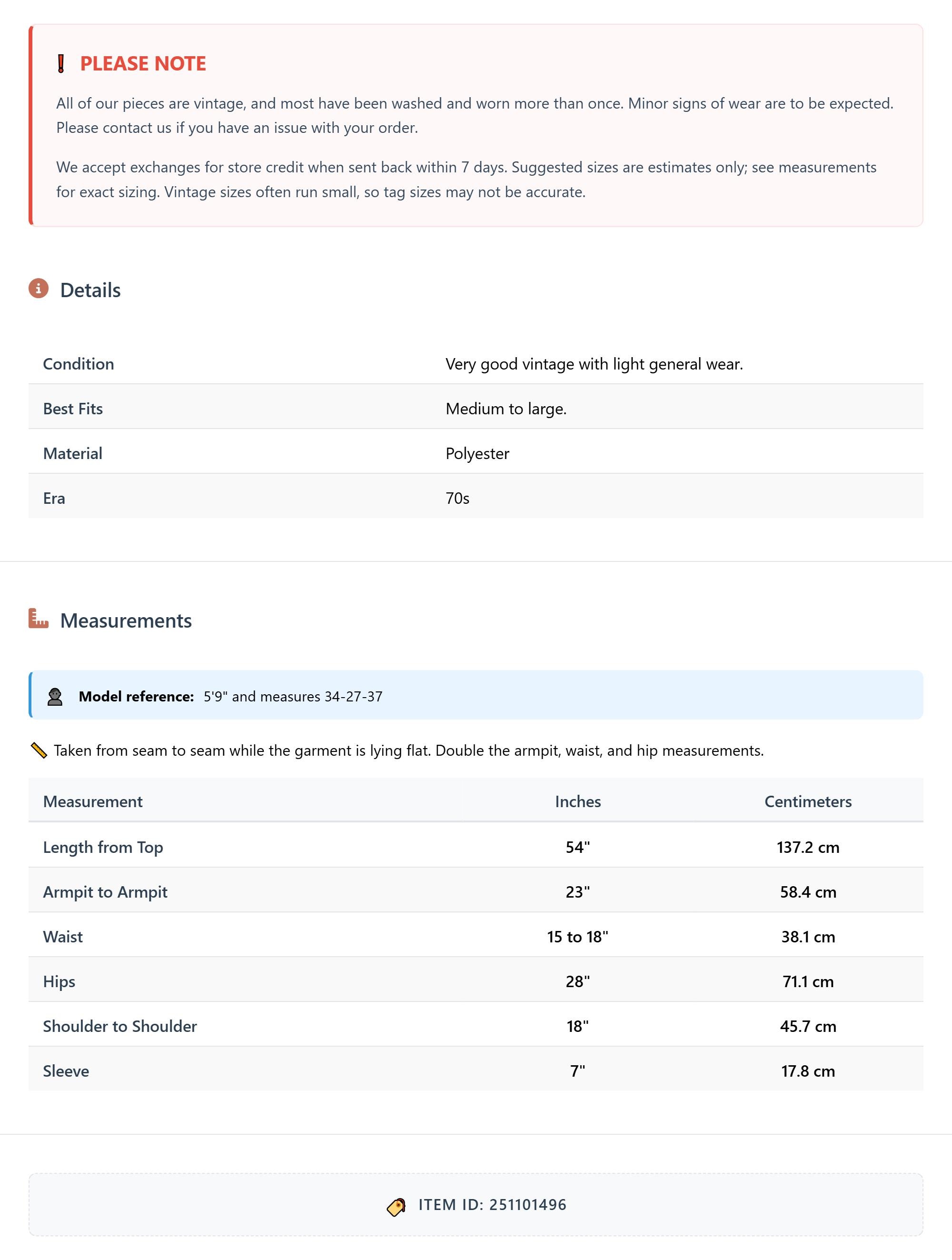 Suggested sizes are estimates only; see measurements for exact sizing. Vintage sizes often run small, so tag sizes may not be accurate.