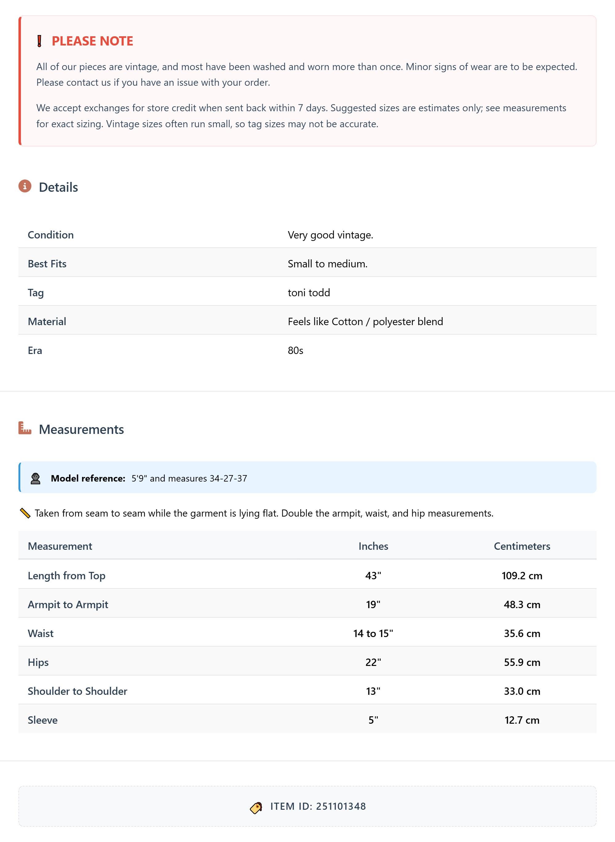 Suggested sizes are estimates only; see measurements for exact sizing. Vintage sizes often run small, so tag sizes may not be accurate.
