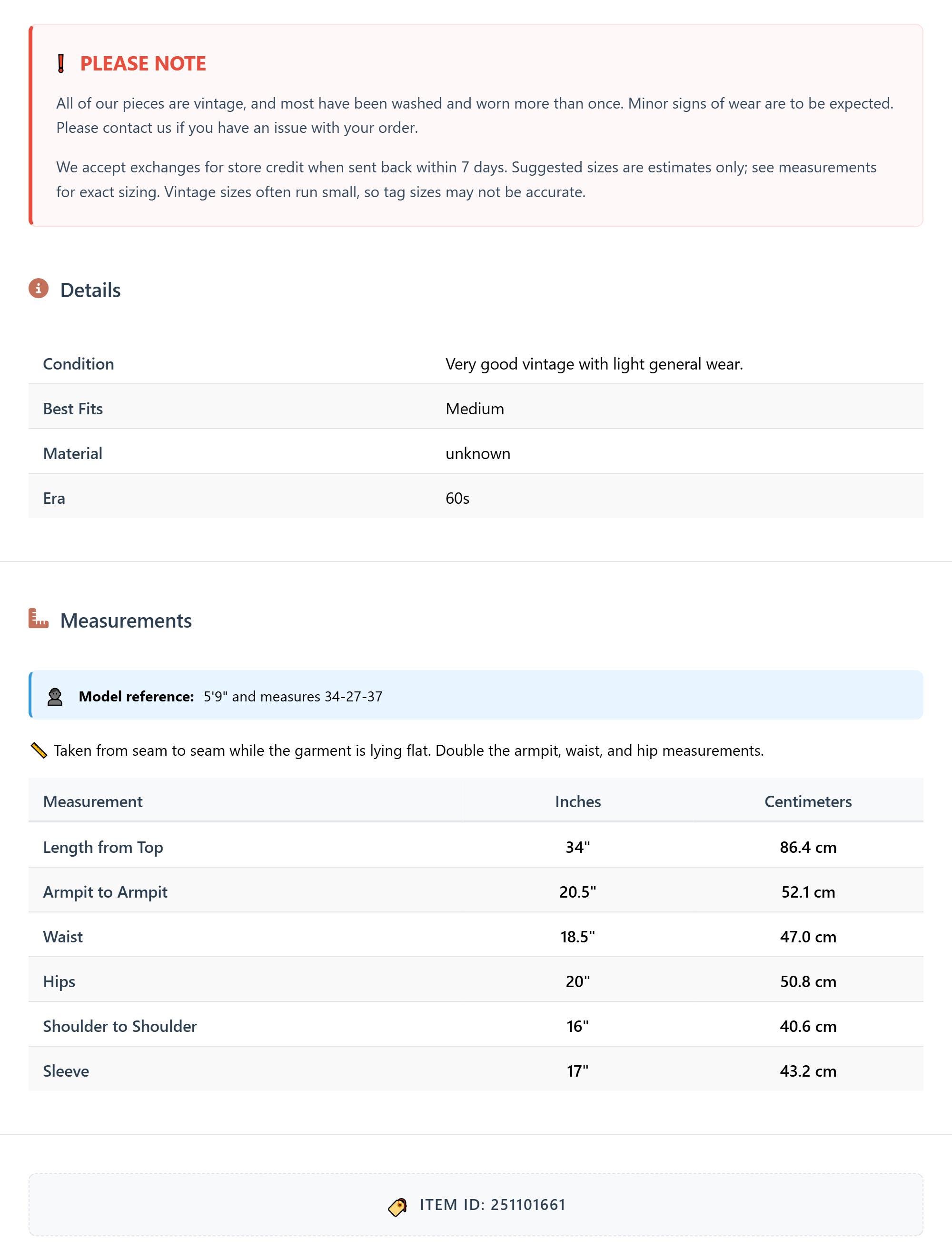 Suggested sizes are estimates only; see measurements for exact sizing. Vintage sizes often run small, so tag sizes may not be accurate.