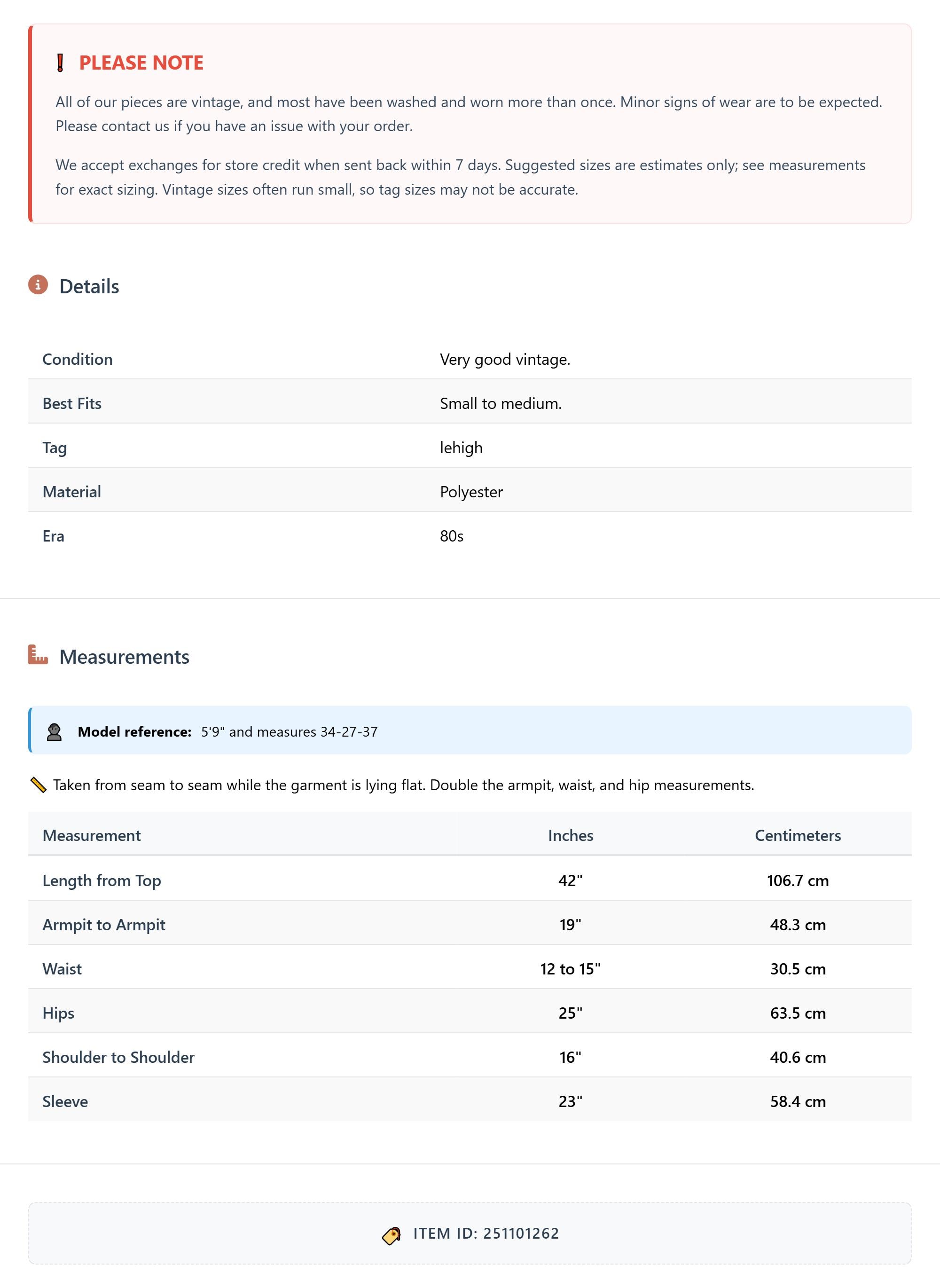 Suggested sizes are estimates only; see measurements for exact sizing. Vintage sizes often run small, so tag sizes may not be accurate.