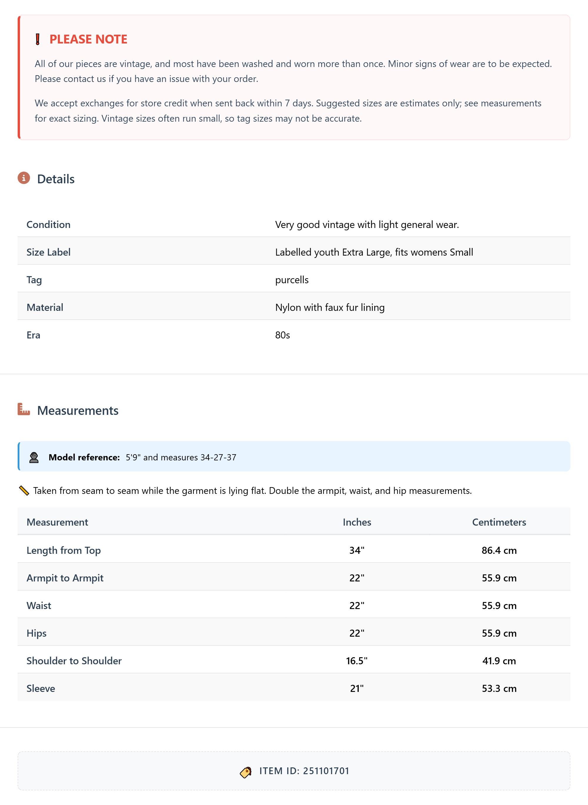 Suggested sizes are estimates only; see measurements for exact sizing. Vintage sizes often run small, so tag sizes may not be accurate.