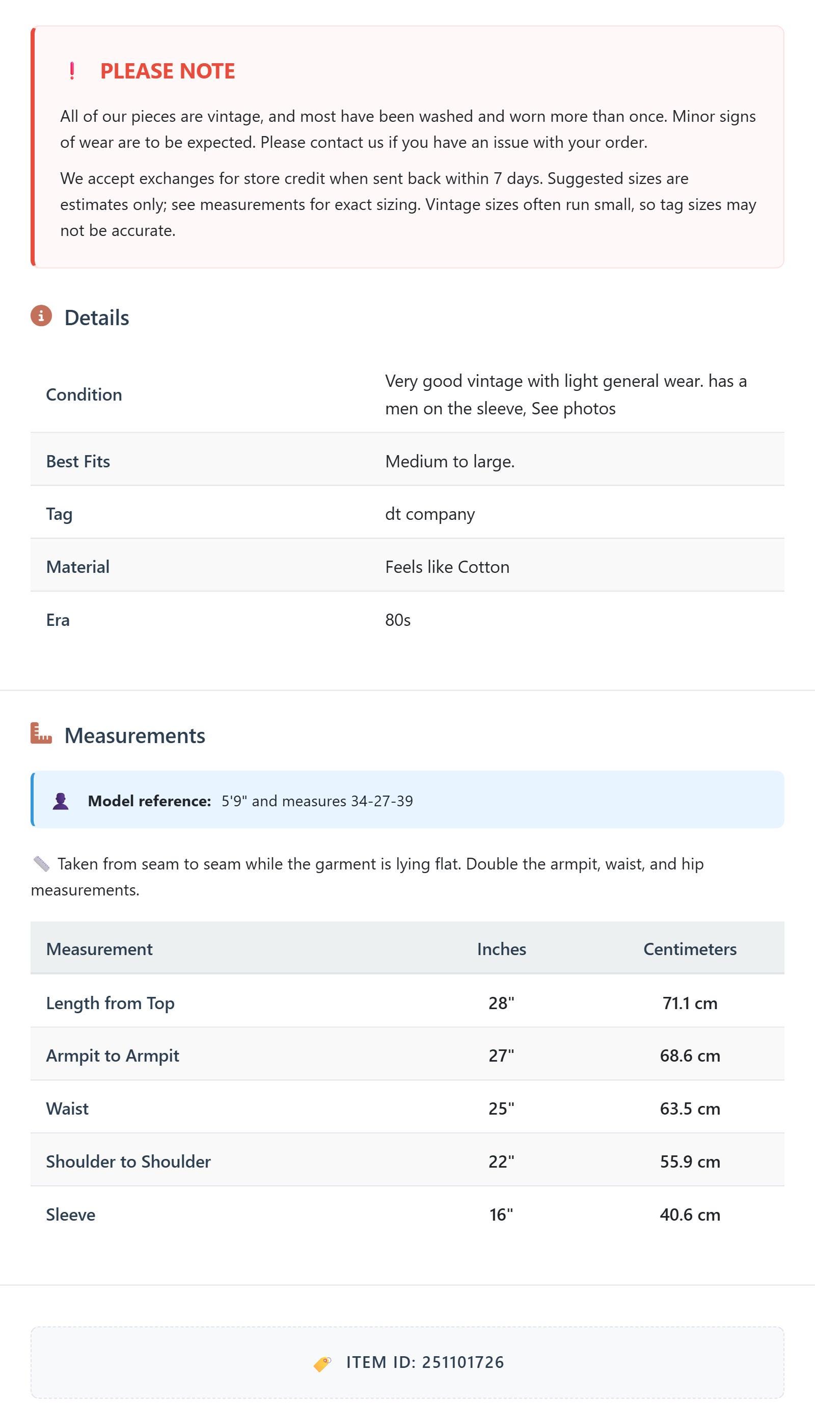 Suggested sizes are estimates only; see measurements for exact sizing. Vintage sizes often run small, so tag sizes may not be accurate.
