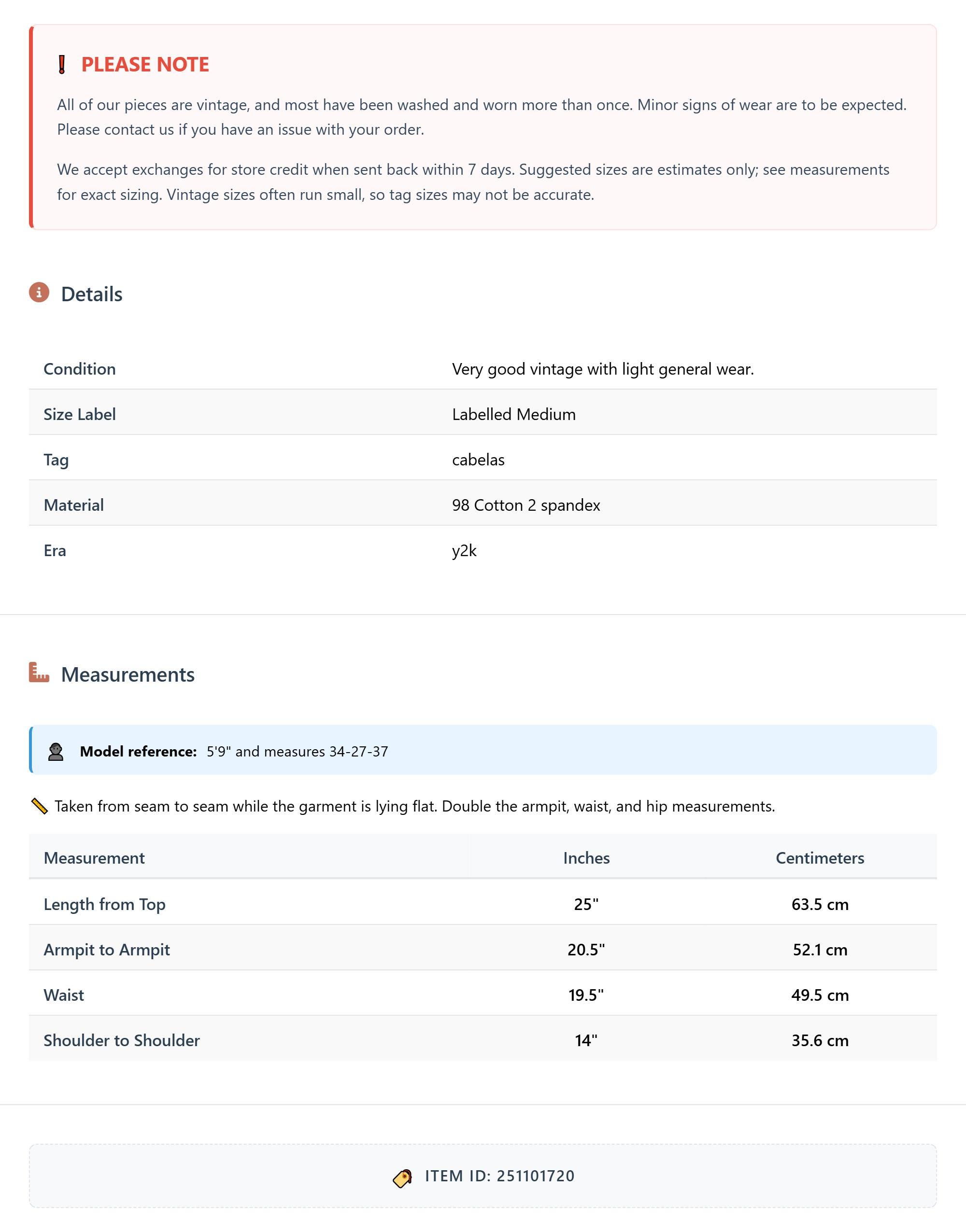 Suggested sizes are estimates only; see measurements for exact sizing. Vintage sizes often run small, so tag sizes may not be accurate.