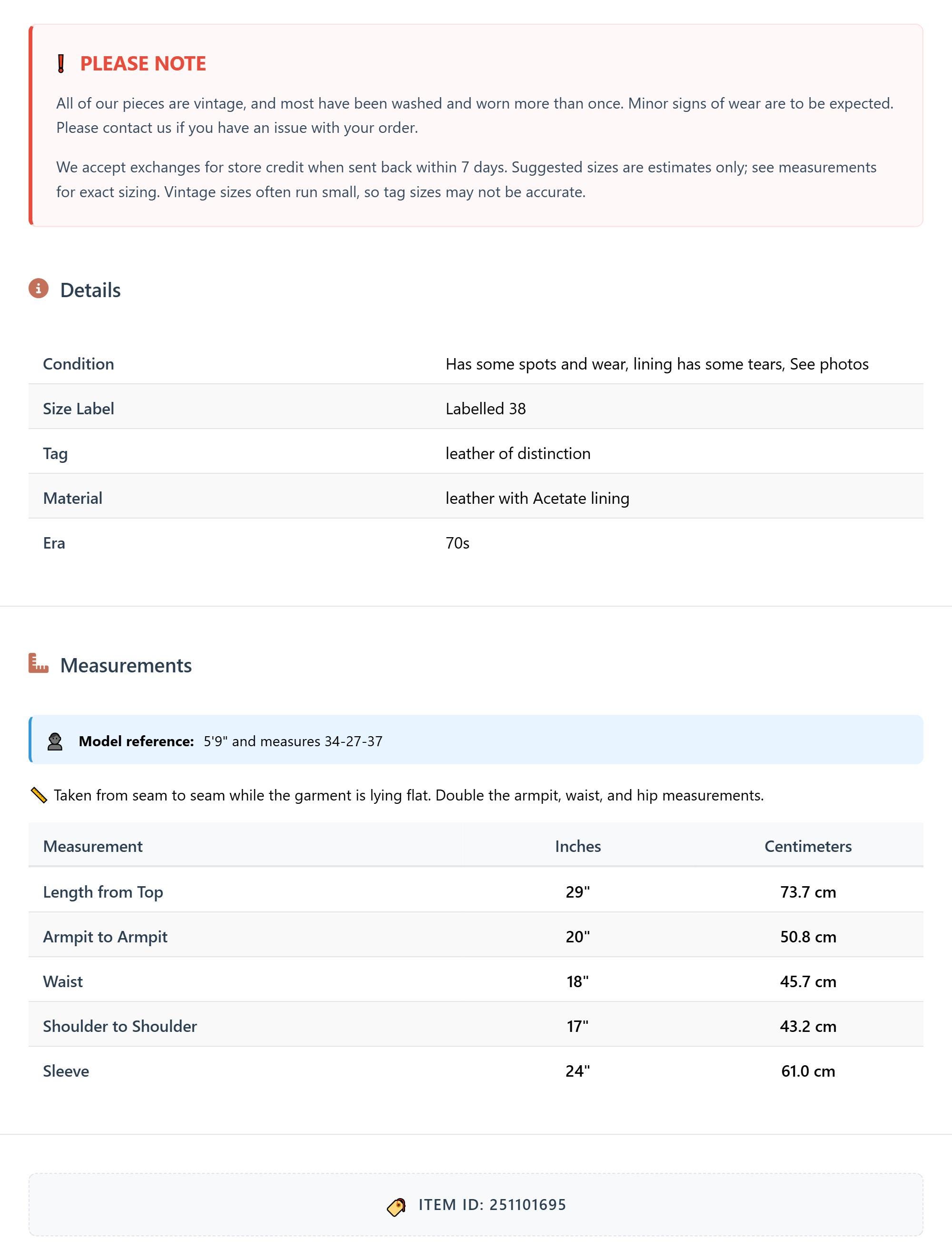 Suggested sizes are estimates only; see measurements for exact sizing. Vintage sizes often run small, so tag sizes may not be accurate.