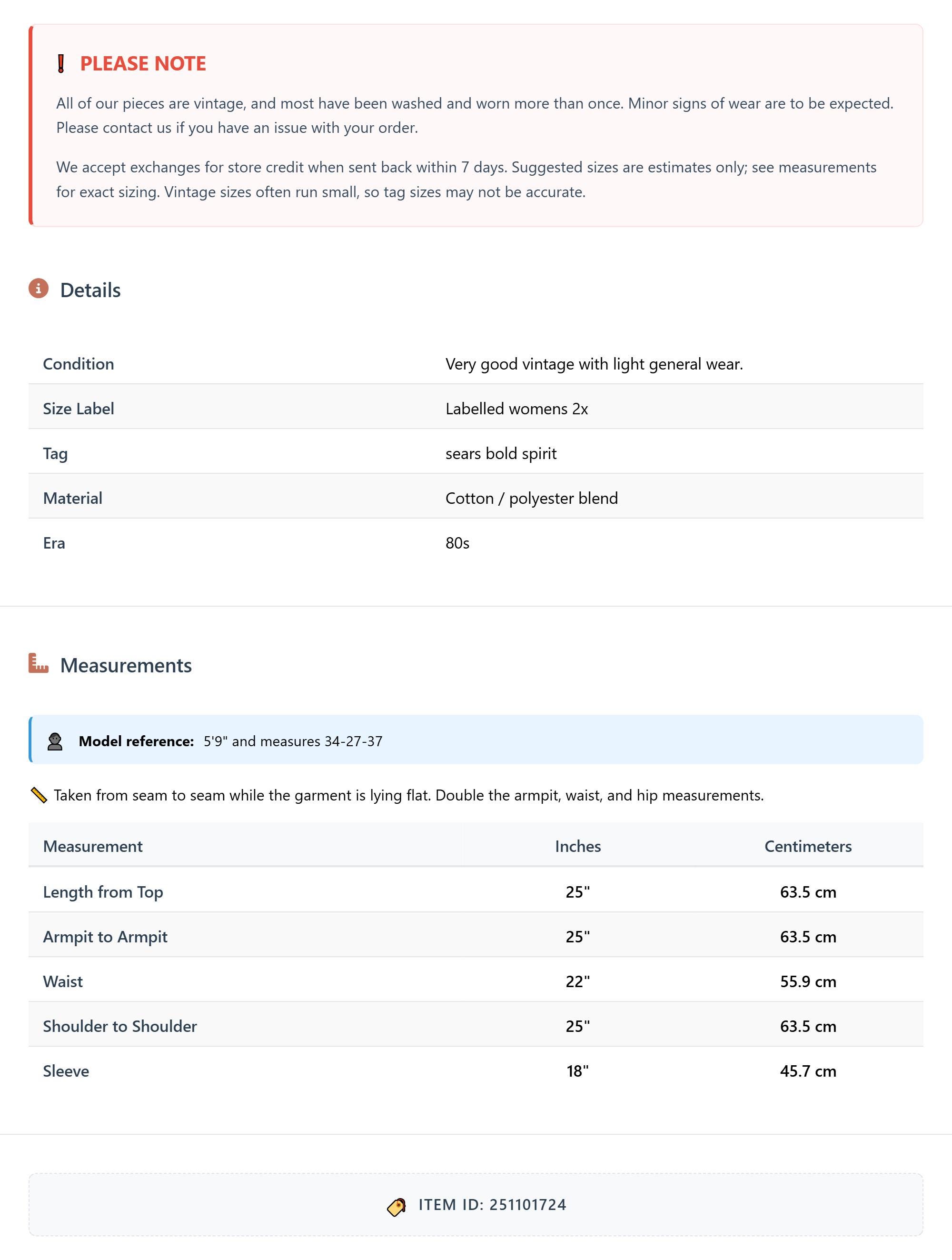Suggested sizes are estimates only; see measurements for exact sizing. Vintage sizes often run small, so tag sizes may not be accurate.