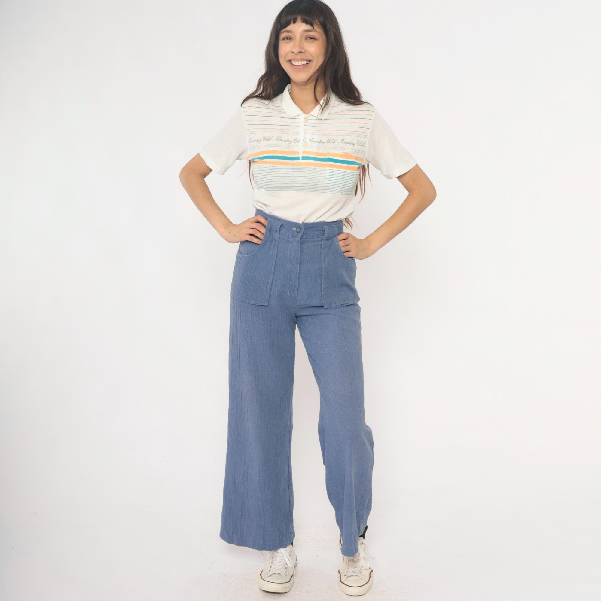 Vintage denim was usually made without any stretch, unlike modern jeans. Check the measurements to ensure proper fit, and remember to give yourself a little wiggle room in the waist and hips, depending on your preferred fit.