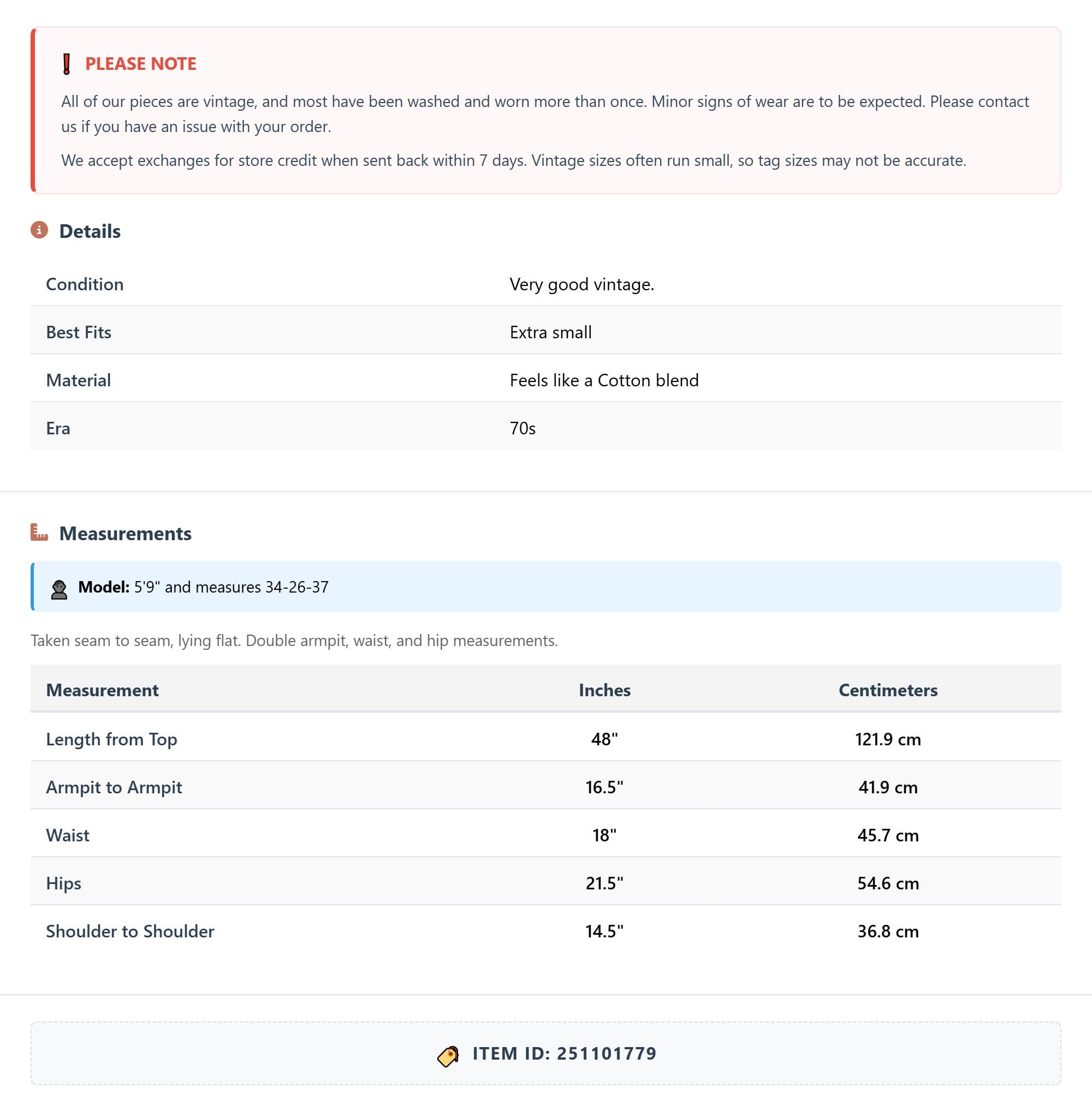 Suggested sizes are estimates only; see measurements for exact sizing. Vintage sizes often run small, so tag sizes may not be accurate.