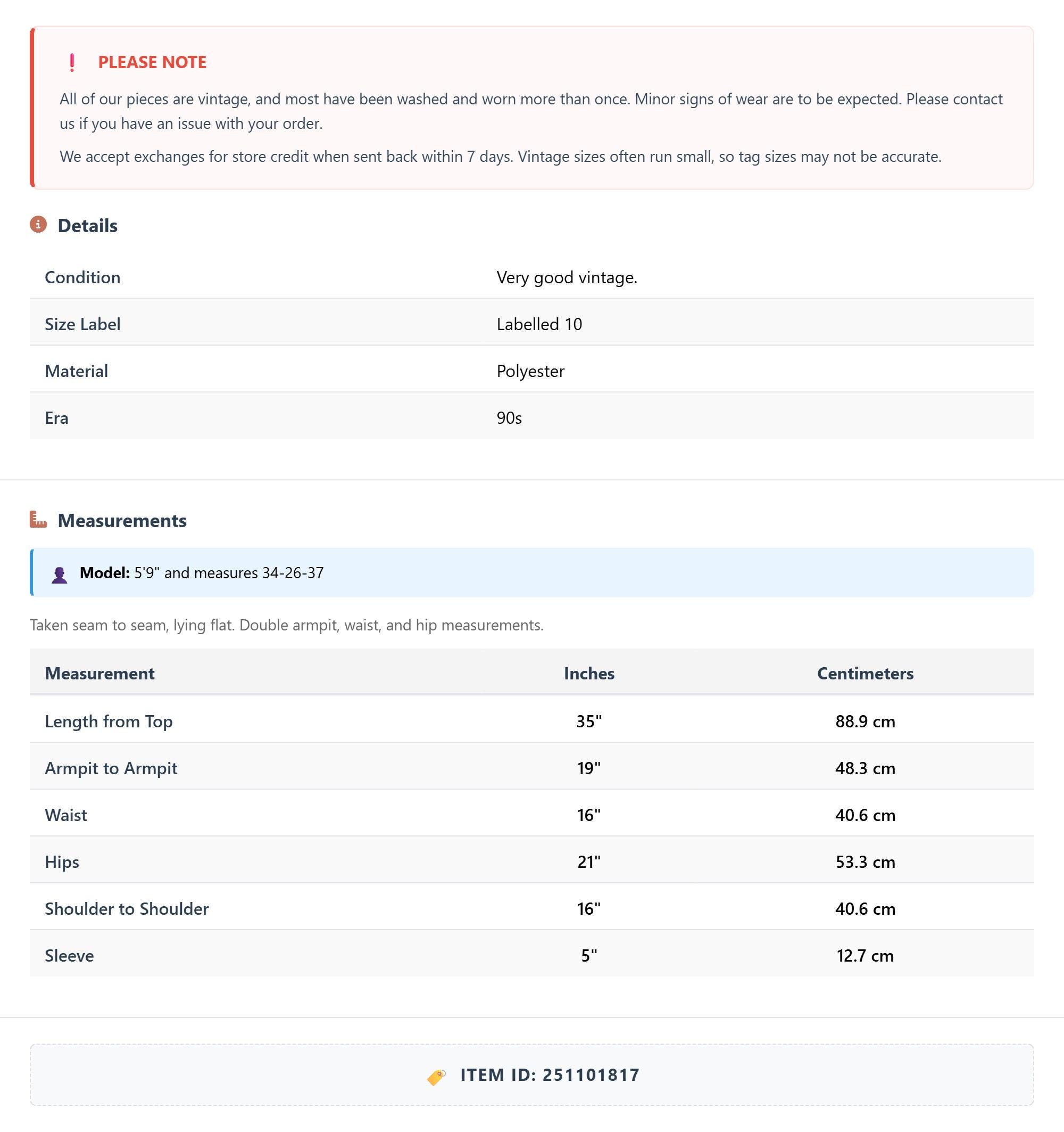 Suggested sizes are estimates only; see measurements for exact sizing. Vintage sizes often run small, so tag sizes may not be accurate.