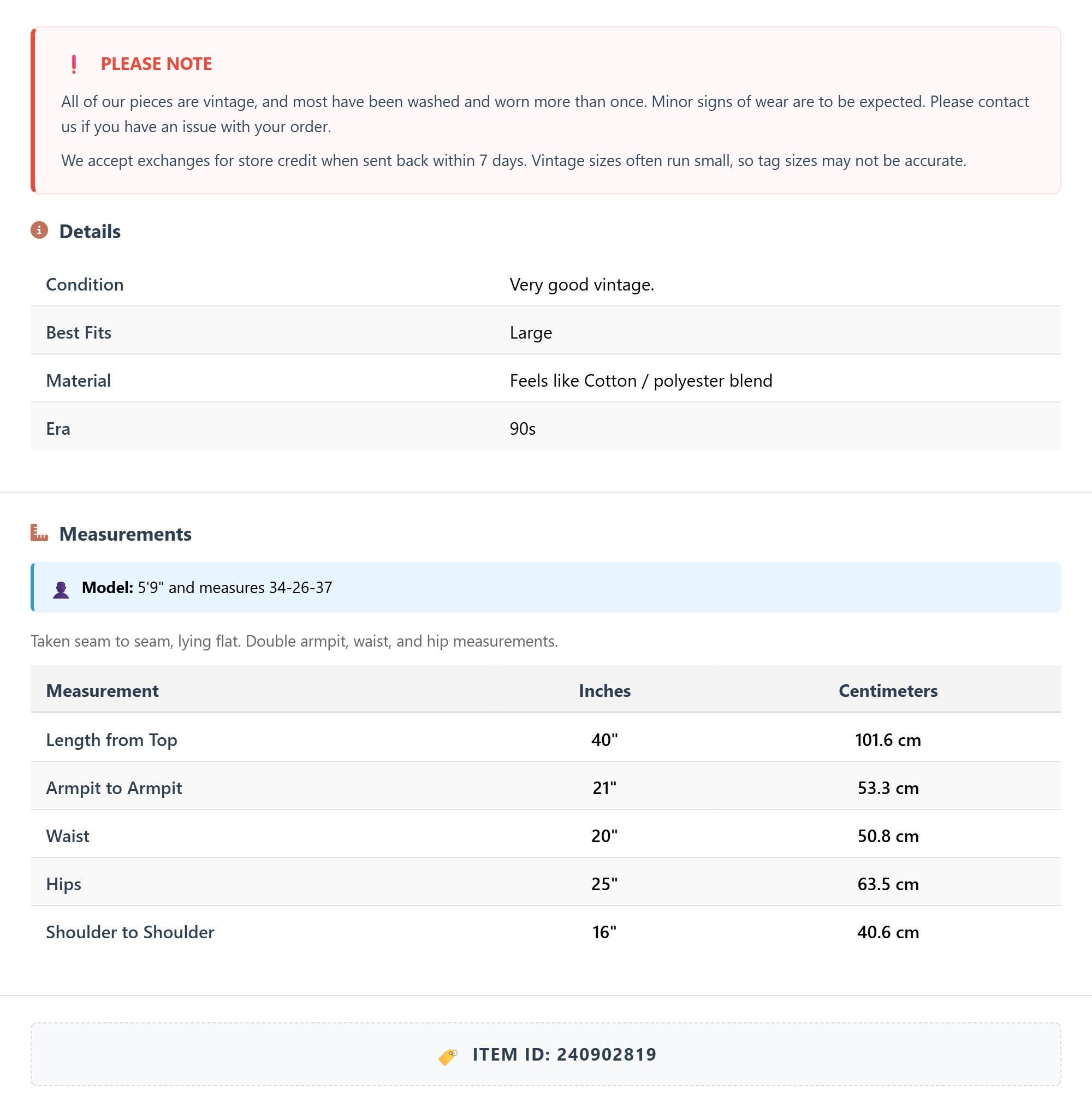 Suggested sizes are estimates only; see measurements for exact sizing. Vintage sizes often run small, so tag sizes may not be accurate.