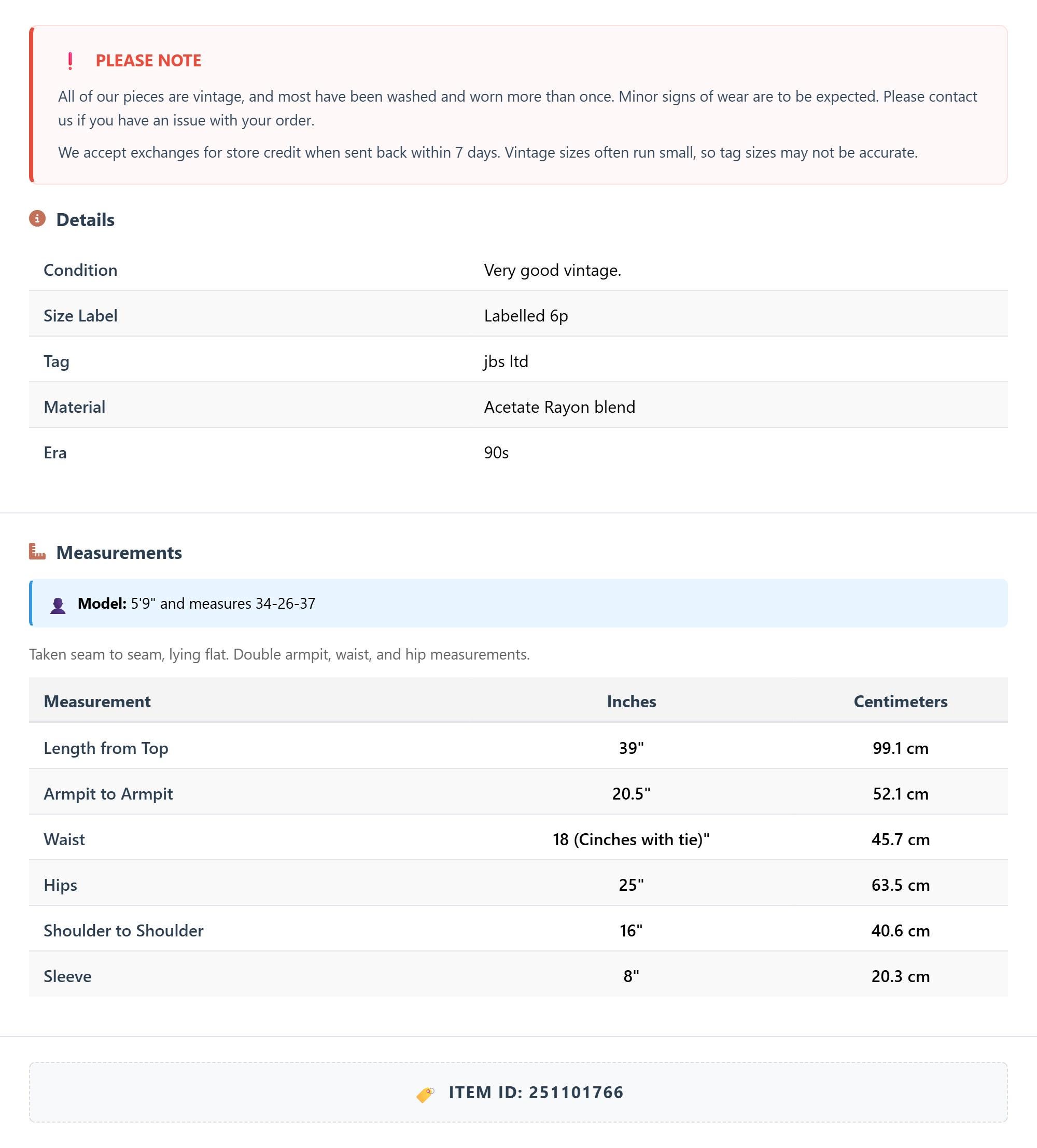 Suggested sizes are estimates only; see measurements for exact sizing. Vintage sizes often run small, so tag sizes may not be accurate.