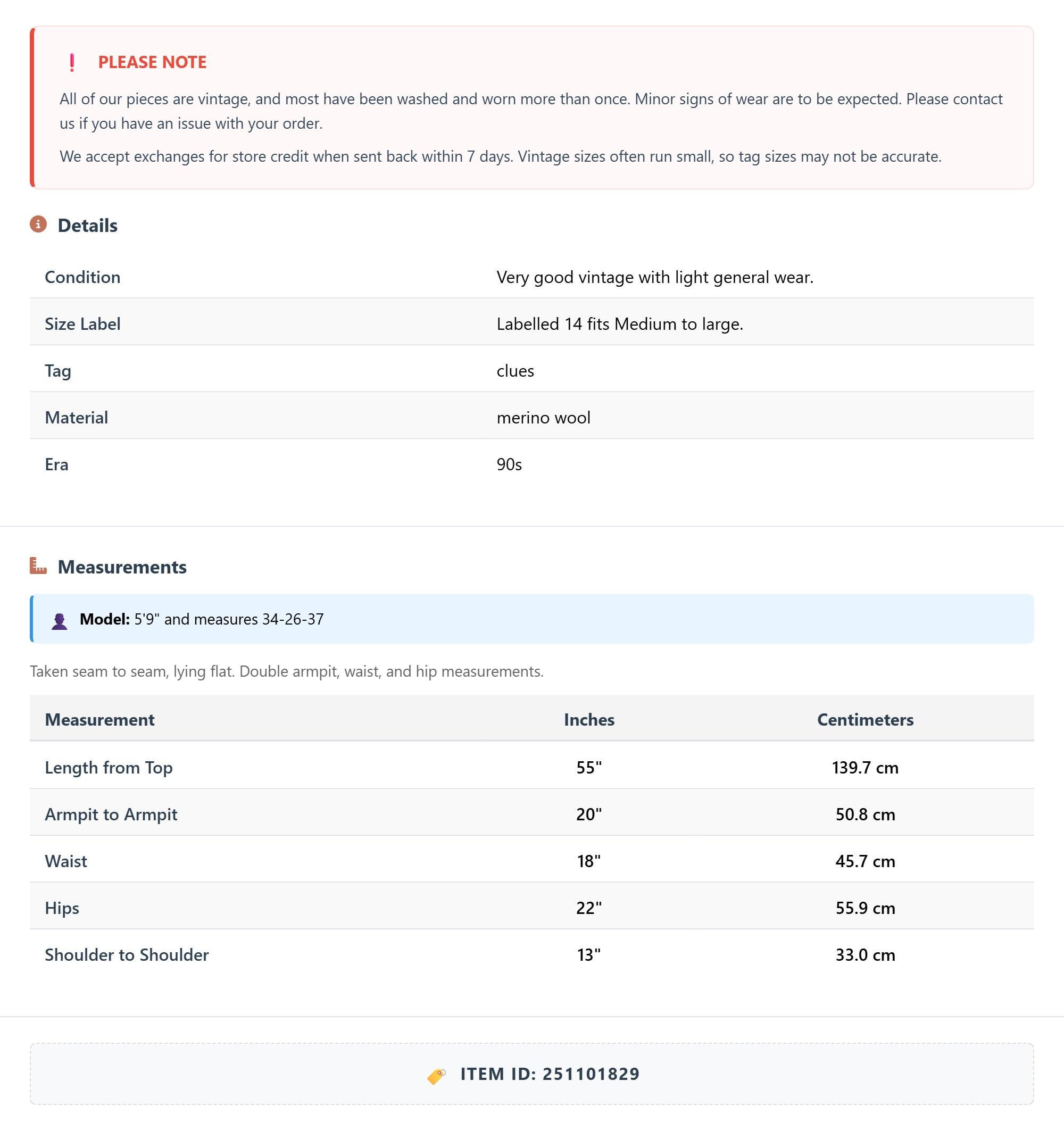 Suggested sizes are estimates only; see measurements for exact sizing. Vintage sizes often run small, so tag sizes may not be accurate.