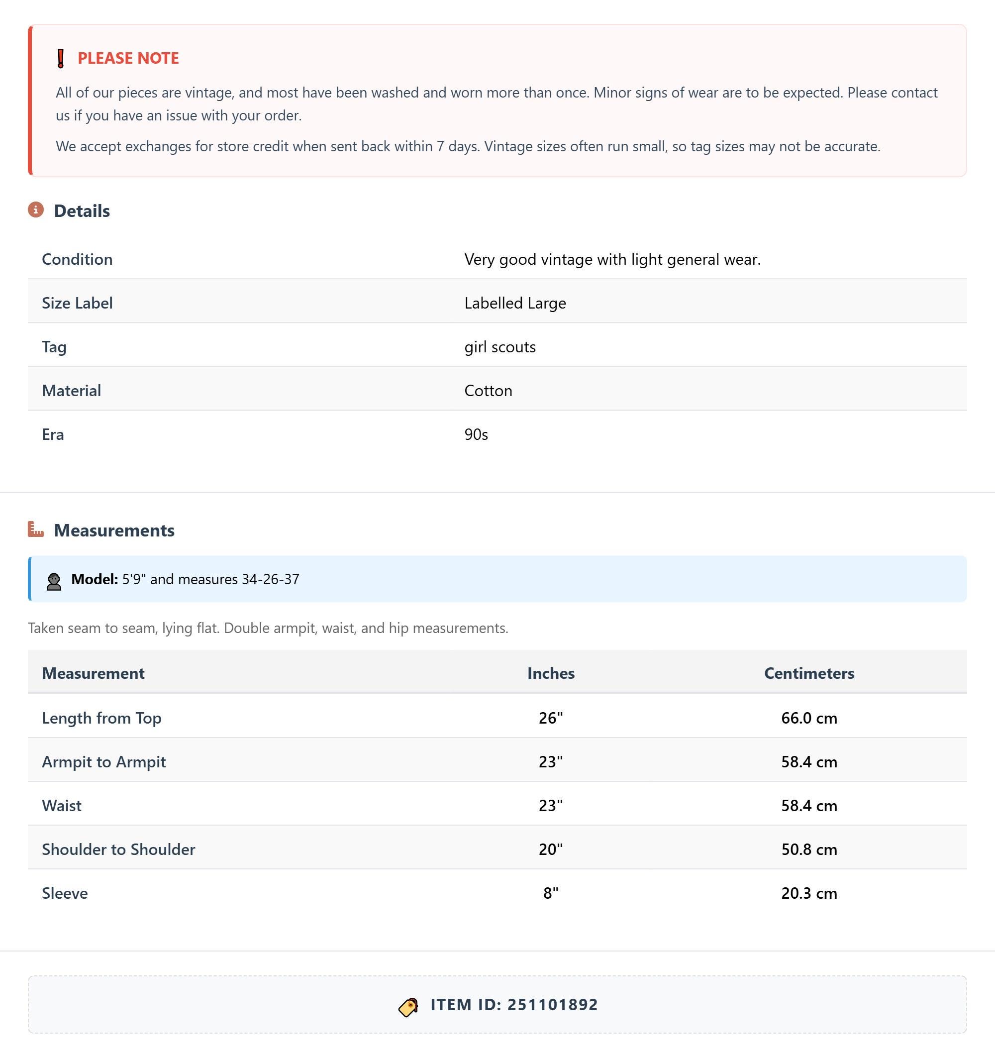 Suggested sizes are estimates only; see measurements for exact sizing. Vintage sizes often run small, so tag sizes may not be accurate.