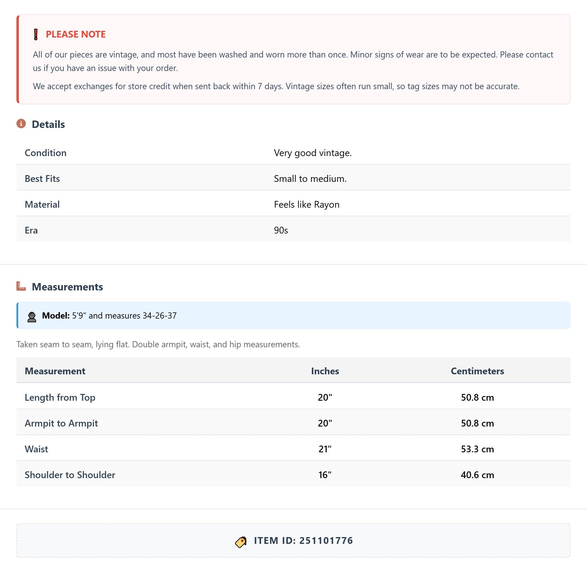 ✨ Please see measurements and condition below. Every garment we sell is authentic vintage and one-of-a-kind! You will receive the exact item photographed.