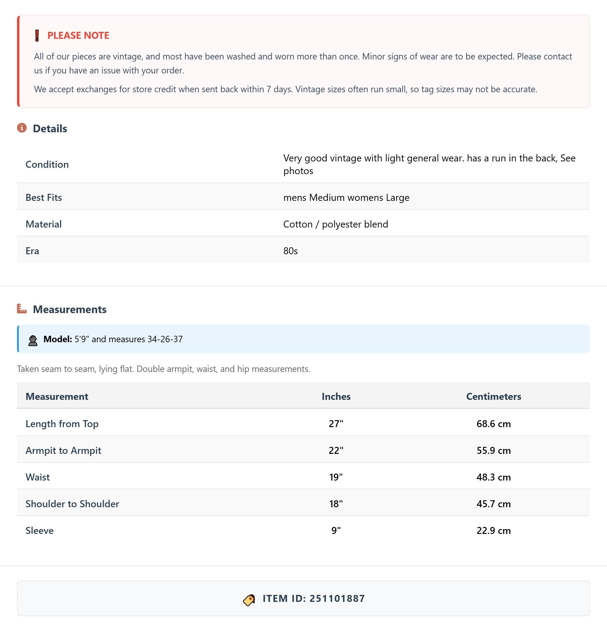 Suggested sizes are estimates only; see measurements for exact sizing. Vintage sizes often run small, so tag sizes may not be accurate.