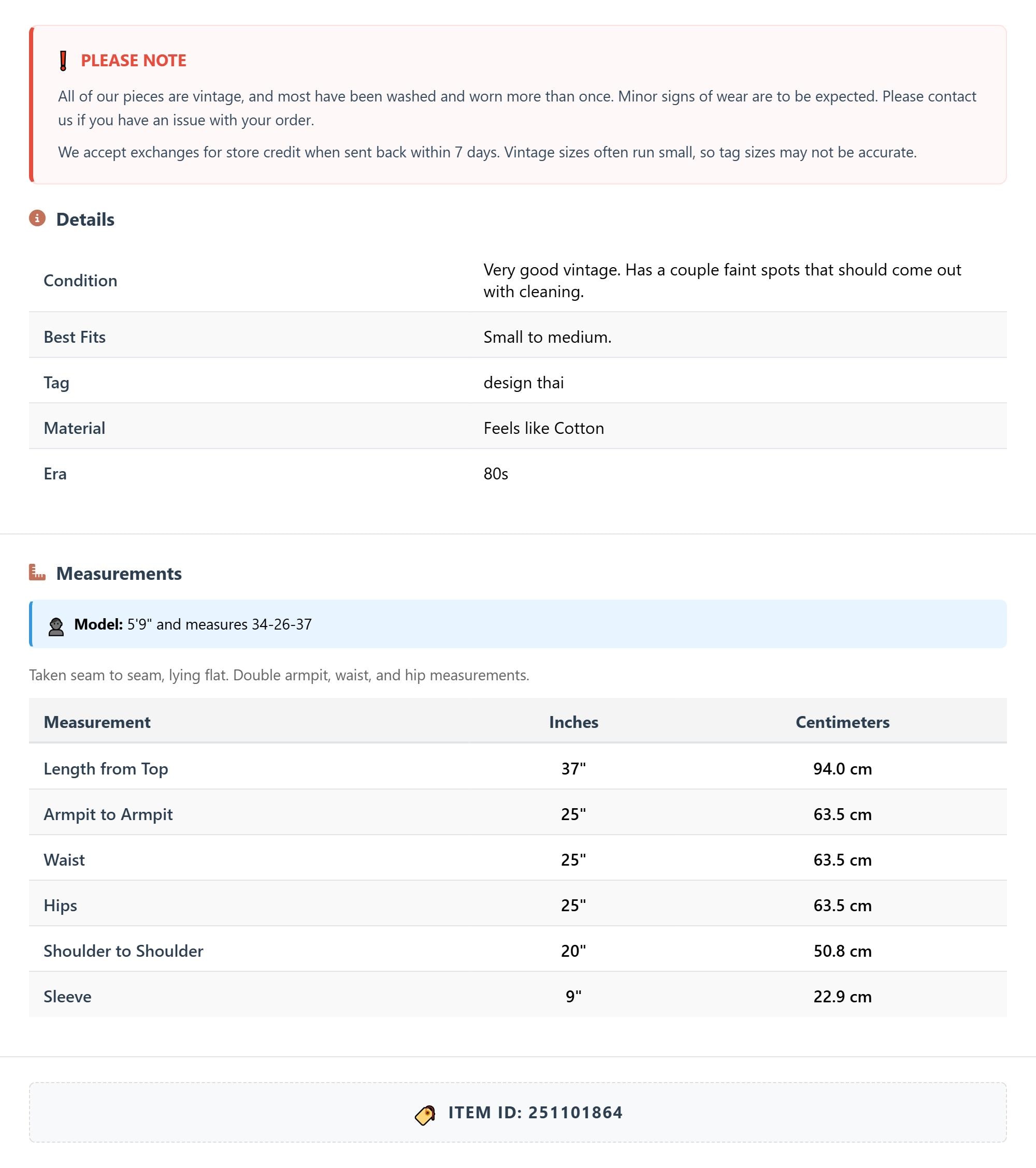 Suggested sizes are estimates only; see measurements for exact sizing. Vintage sizes often run small, so tag sizes may not be accurate.