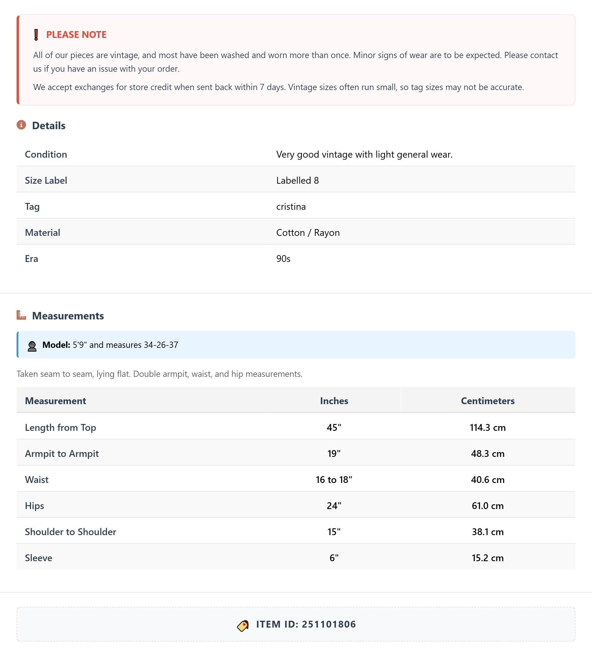 Suggested sizes are estimates only; see measurements for exact sizing. Vintage sizes often run small, so tag sizes may not be accurate.