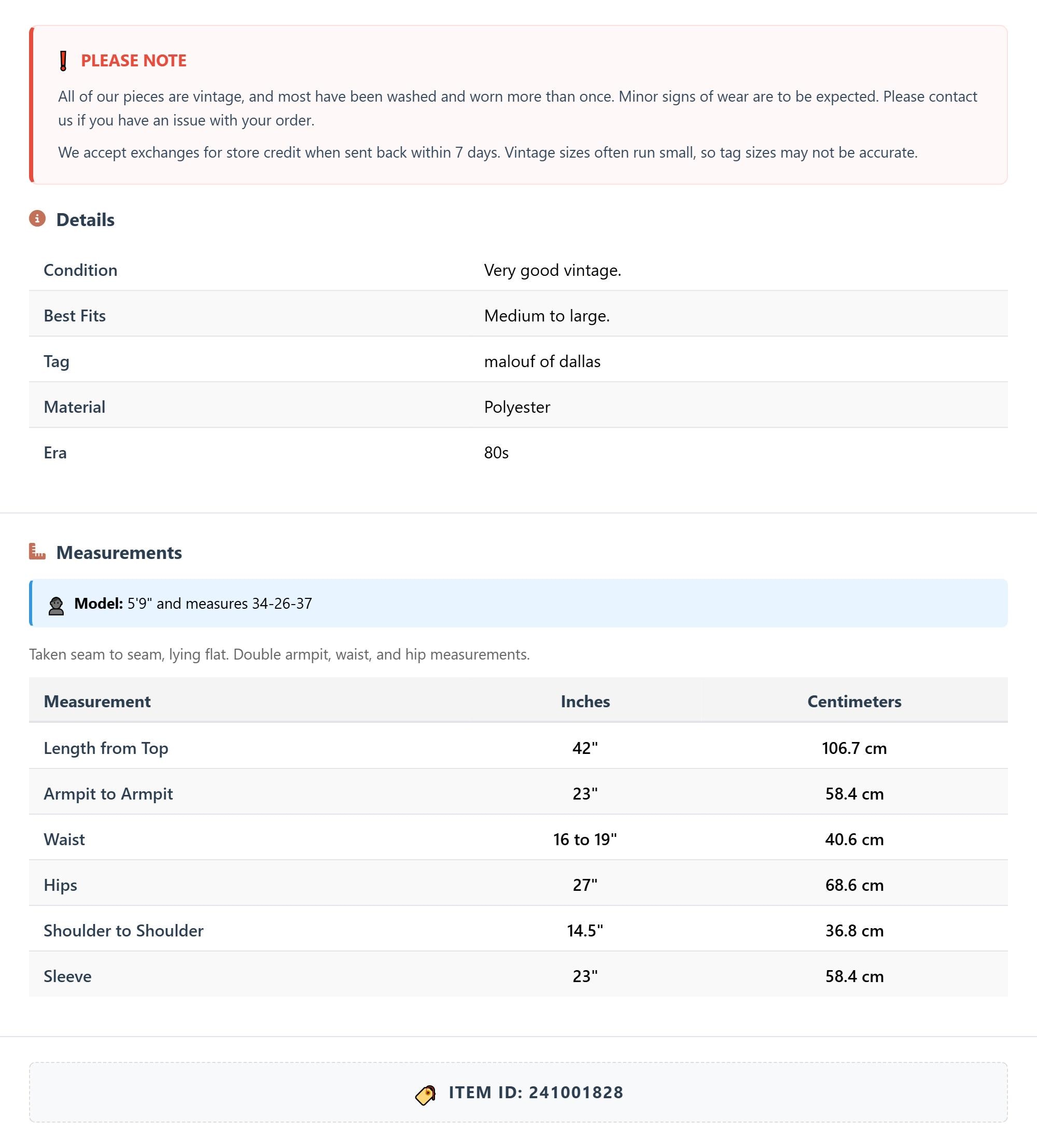Suggested sizes are estimates only; see measurements for exact sizing. Vintage sizes often run small, so tag sizes may not be accurate.