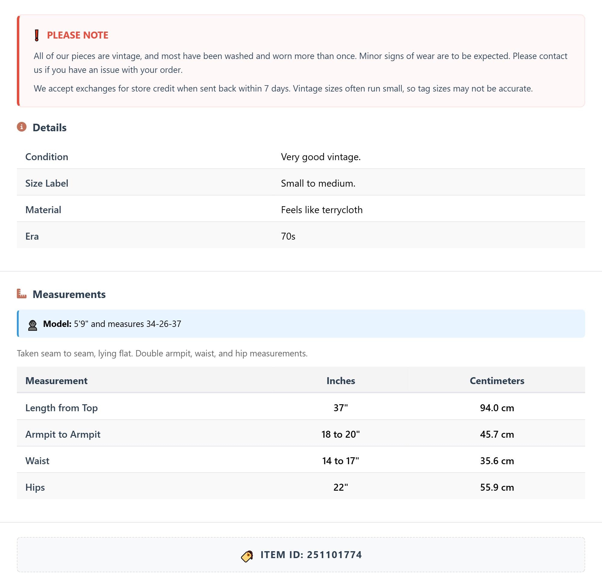 Suggested sizes are estimates only; see measurements for exact sizing. Vintage sizes often run small, so tag sizes may not be accurate.