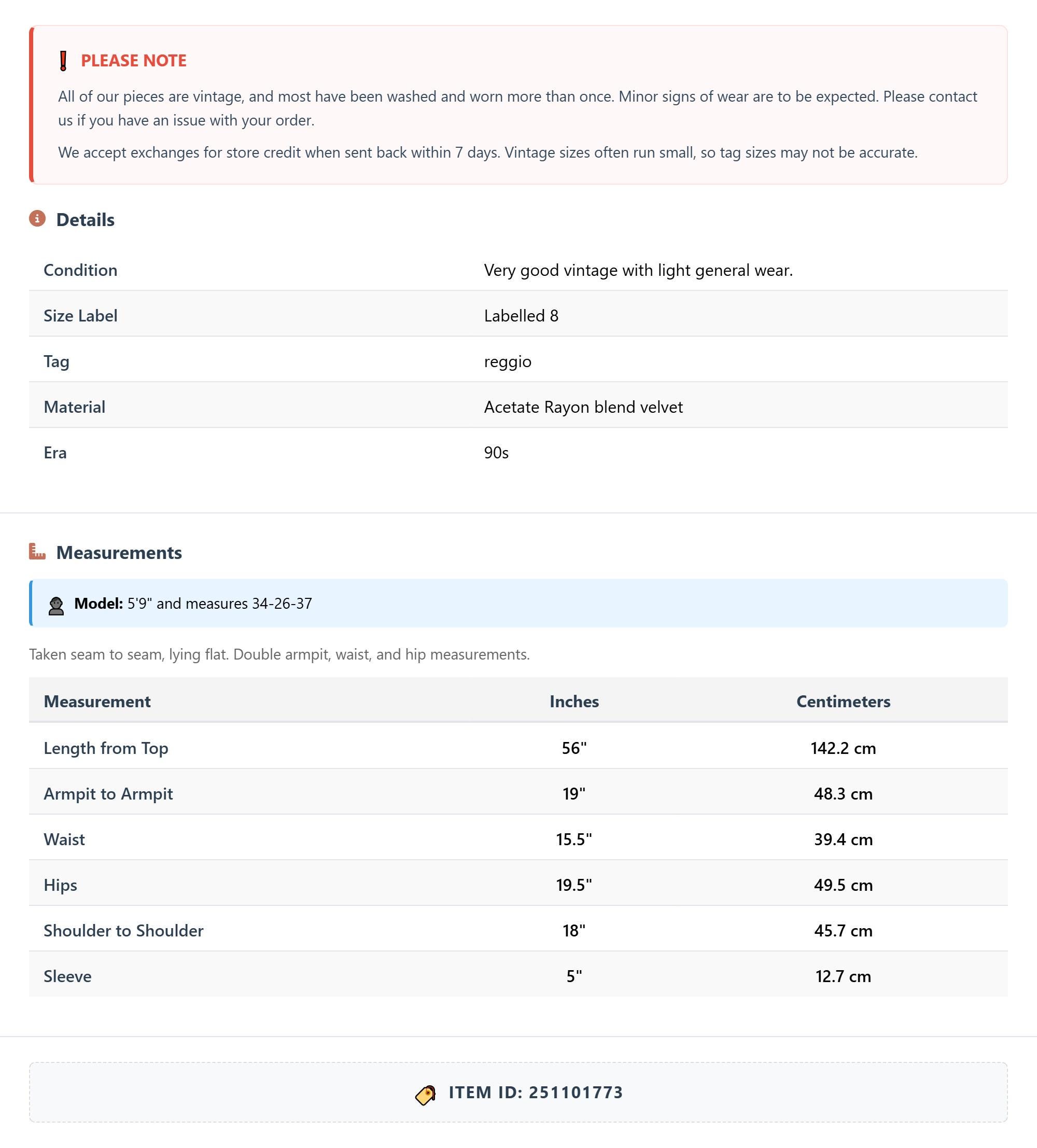Measurements are taken laying flat and should be doubled where applicable. The "best fits" size is just an estimate, and vintage sizing can vary from modern sizing. Please use measurements to ensure proper fit. The best thing to do is measure a similar item of your own, and compare. When an item has stretch, we will list the unstretched dimensions with the stretched measurement afterwards.